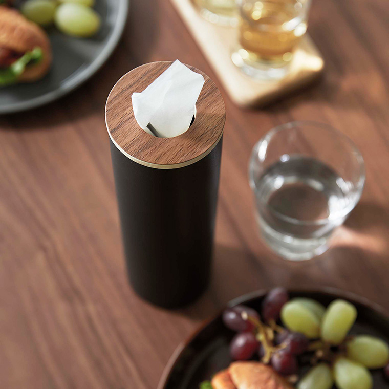 ボトル型のスタイリッシュなティッシュケース。縦型なので、場所をとりません。本体がスチール製で重いから安定感があり、ティッシュの取り出しもスムーズ。ティッシュの詰め替えが簡単なパッキン付きの蓋。簡単に市販のティッシュの詰め替えが可能です。上からティッシュを取り出せるボトル型なので、ボックス型に比べて省スペースで置き場所を選びません。車のドリンクホルダーやサイドポケットにも。