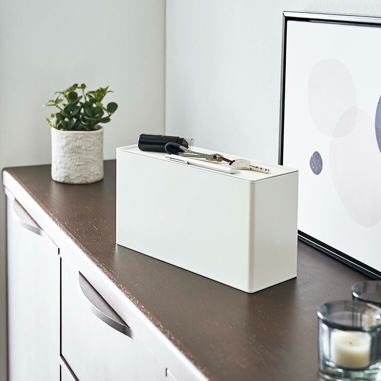 奥行き9.5cm、横幅25.5cm、高さ14cmとコンパクトなサイズなので、置き場に困らず暮らしに溶け込みます。パッケージのままだと見た目が気になってしまう生活感をなくし、使いやすくお洒落にしてくれる収納アイテムです。