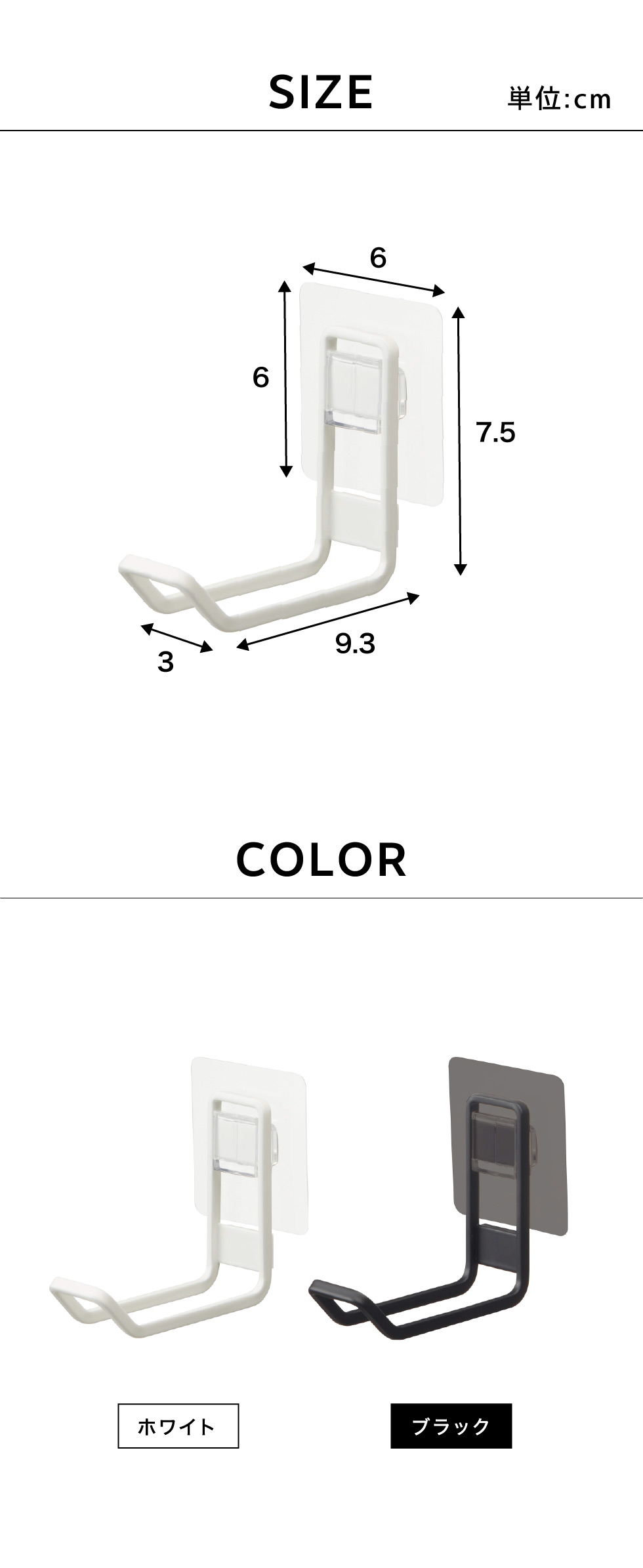 ●商品サイズ: 本体:約W3×D9.3×H7.5cm (フィルムフック含まず)、フィルムフック接着面:約W6×H6cm