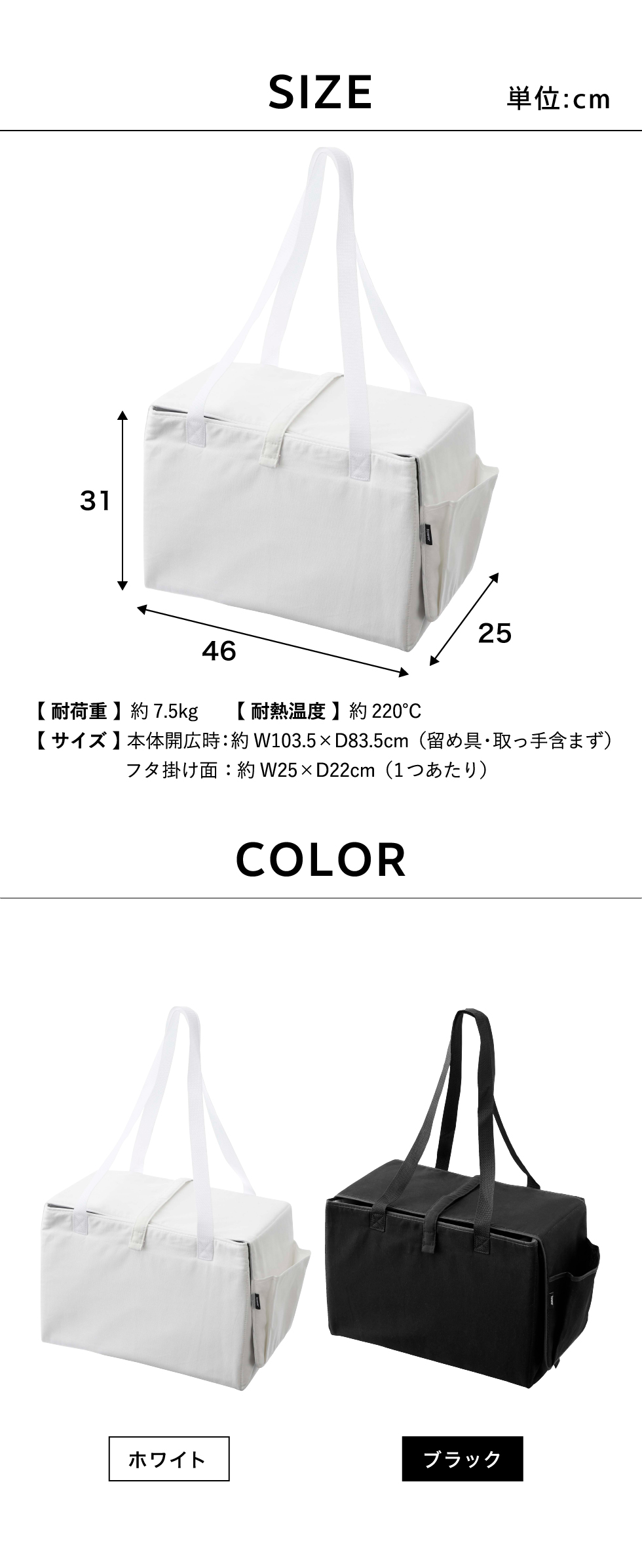 ●商品サイズ: 組み立てサイズ:約W46×D25×H31cm(取っ手含まず)、本体開広時:約W103.5×D83.5cm(留め具・取っ手含まず)、フタ:約W97×D24cm(留め具含まず)