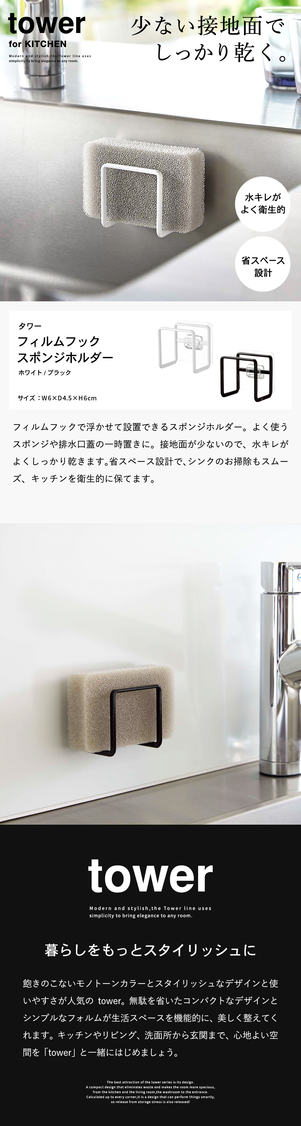 フィルムフックスポンジホルダー タワー山崎実業 tower ホワイト/ブラック 6621 6622