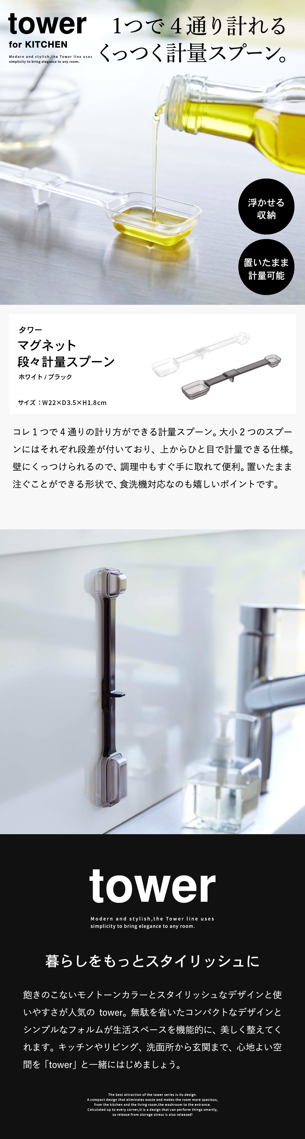 ホワイトとブラックを中心とした飽きのこないモノトーンカラーと、どんなインテリアにもスッと馴染むスタイリッシュなデザイン。そして、とことんシンプルながら、より豊かな暮らしを提案するアイデアがたくさん詰まった、使いやすいアイテムが人気です。無駄を省いたコンパクトなデザインと、シンプルなフォルムが生活スペースを機能的に、美しく整えてくれます。towerのアイテムをライン使いすれば、すっきりとした統一感が生まれ、お洒落でシックな雰囲気を演出します。キッチンやリビング、洗面所から玄関まで揃えたくなるtowerシリーズで、毎日の暮らしを彩る心地よい空間を。