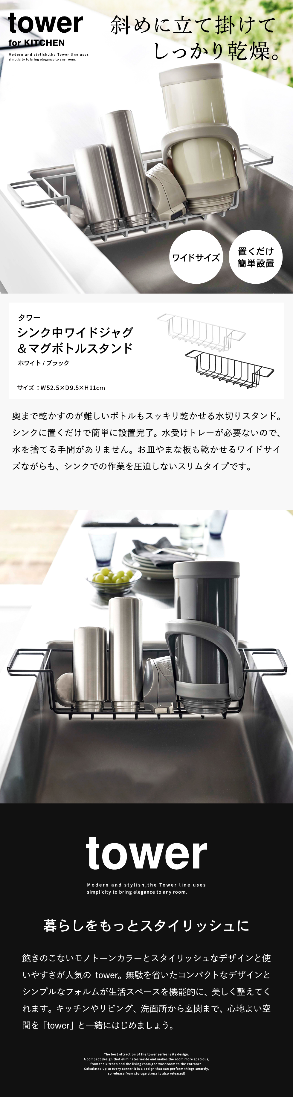 シンク中ワイドジャグ&マグボトルスタンド タワー ホワイト