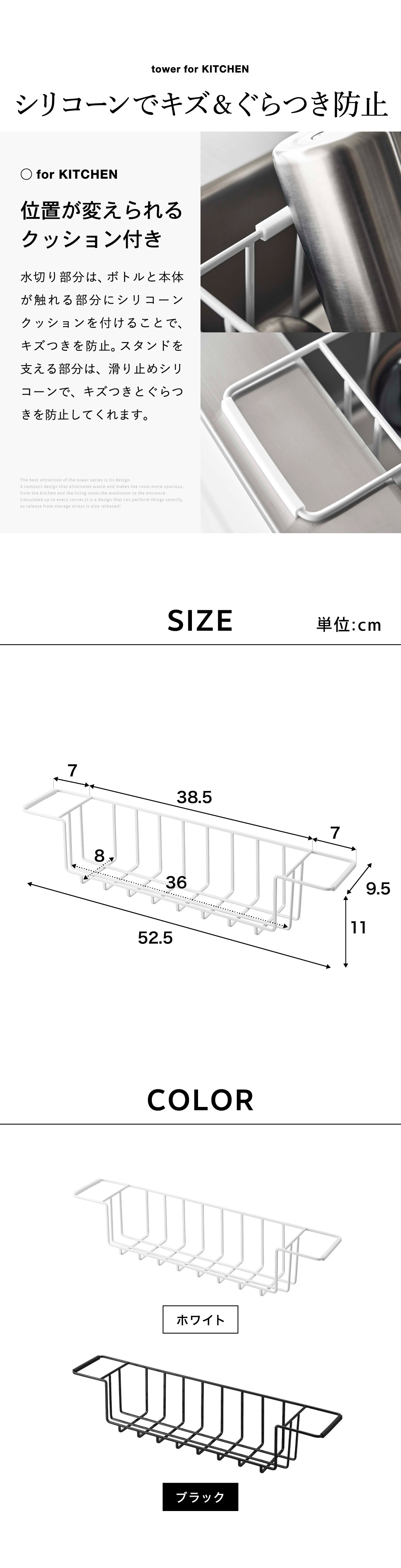 ●素材・材質: 本体:スチール(ユニクロメッキ+粉体塗装) 滑り止め・クッション:シリコーン