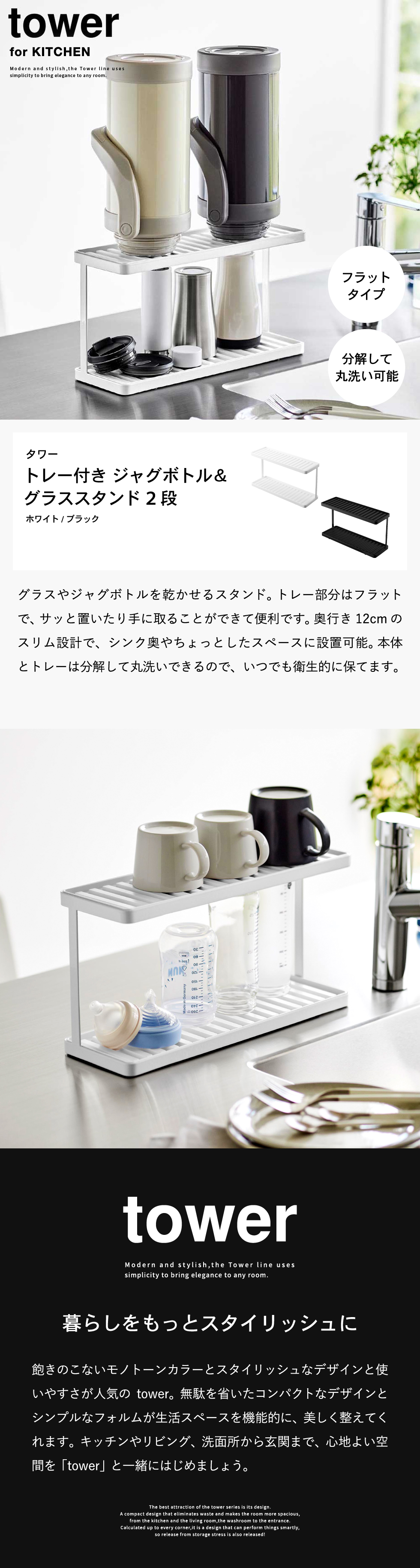 ホワイトとブラックを中心とした飽きのこないモノトーンカラーと、どんなインテリアにもスッと馴染むスタイリッシュなデザイン。そして、とことんシンプルながら、より豊かな暮らしを提案するアイデアがたくさん詰まった、使いやすいアイテムが人気です。無駄を省いたコンパクトなデザインと、シンプルなフォルムが生活スペースを機能的に、美しく整えてくれます。towerのアイテムをライン使いすれば、すっきりとした統一感が生まれ、お洒落でシックな雰囲気を演出します。キッチンやリビング、洗面所から玄関まで揃えたくなるtowerシリーズで、毎日の暮らしを彩る心地よい空間を。