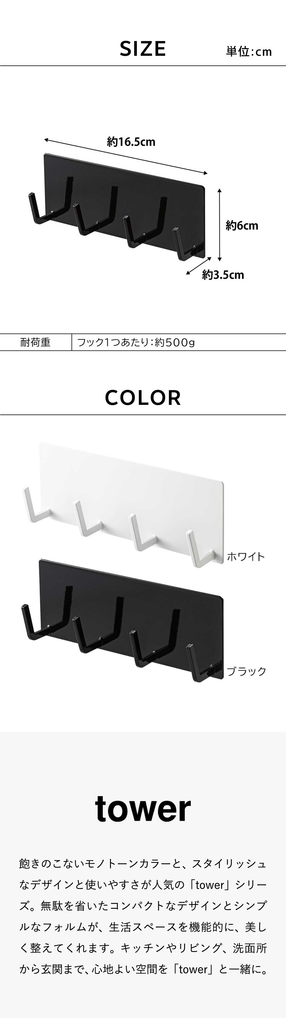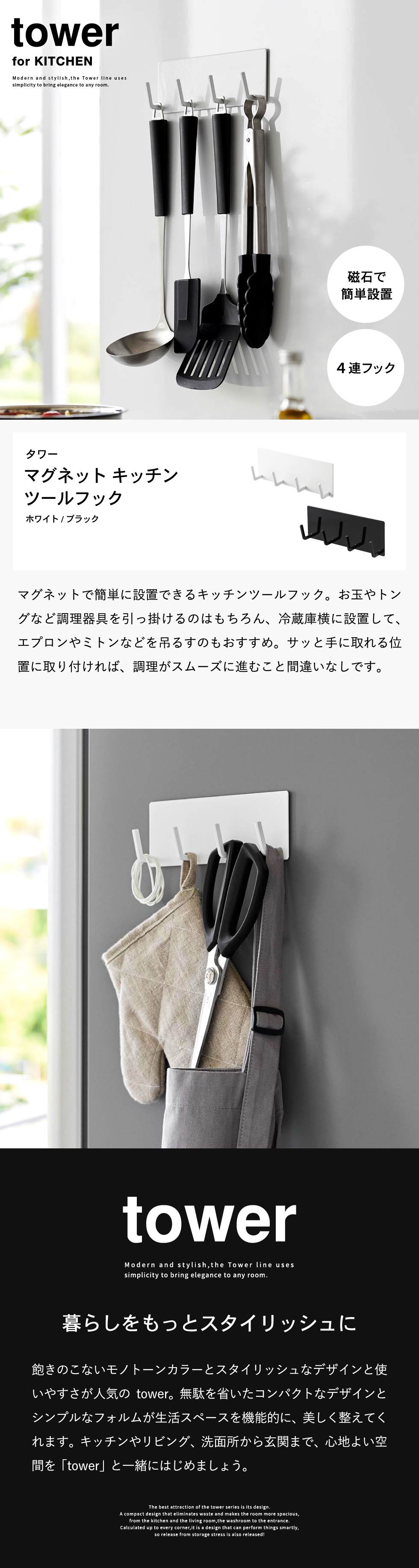 ホワイトとブラックを中心とした飽きのこないモノトーンカラーと、どんなインテリアにもスッと馴染むスタイリッシュなデザイン。そして、とことんシンプルながら、より豊かな暮らしを提案するアイデアがたくさん詰まった、使いやすいアイテムが人気です。無駄を省いたコンパクトなデザインと、シンプルなフォルムが生活スペースを機能的に、美しく整えてくれます。towerのアイテムをライン使いすれば、すっきりとした統一感が生まれ、お洒落でシックな雰囲気を演出します。キッチンやリビング、洗面所から玄関まで揃えたくなるtowerシリーズで、毎日の暮らしを彩る心地よい空間を。