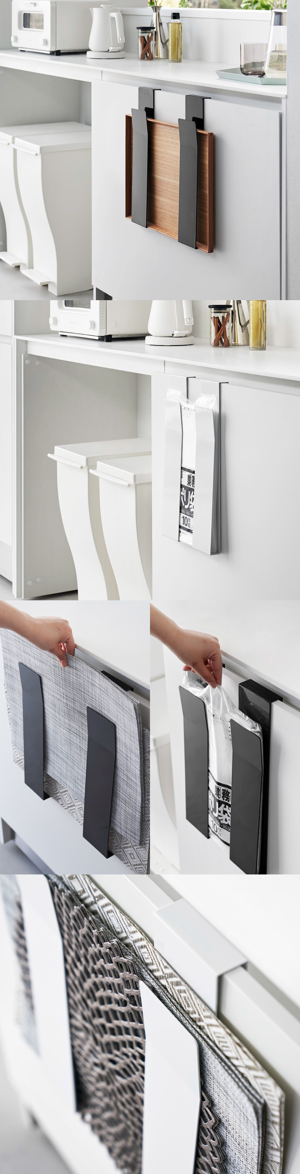 扉に掛けるだけ!サッと取り出せて便利なランチョンマット収納!ランチョンマットを省スペースに収納 ゴミ袋やトレーの収納にも。 タワーシリーズ yamazaki