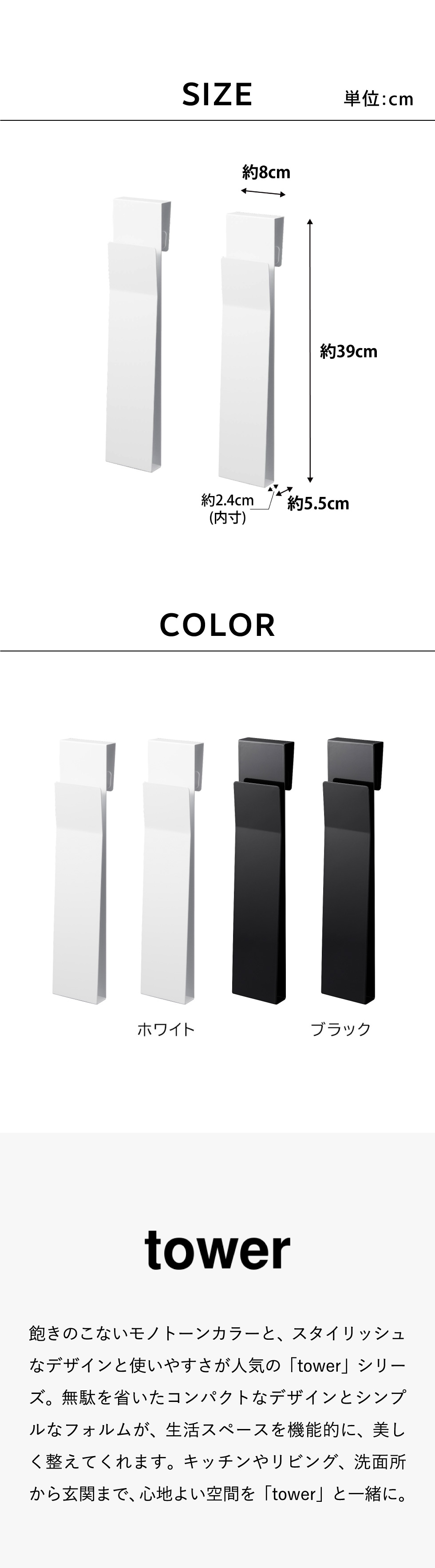 tower 扉に掛けるランチョンマット収納 タワー 山崎実業 ホワイト ブラック 4084 4085