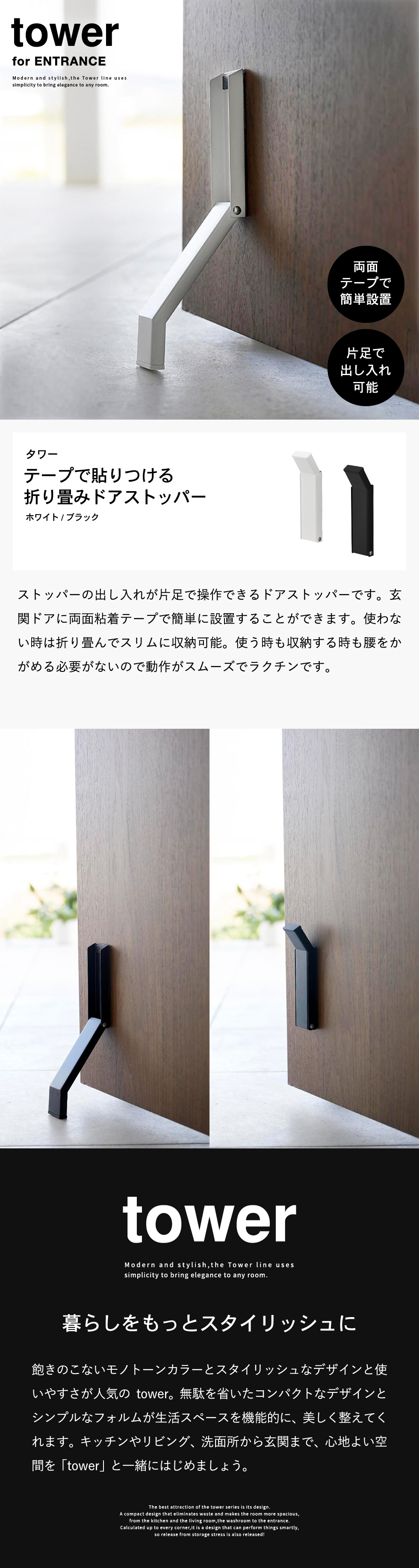 tower テープで貼りつける折り畳みドアストッパー タワー 山崎実業 3722 3723 ホワイト ブラック