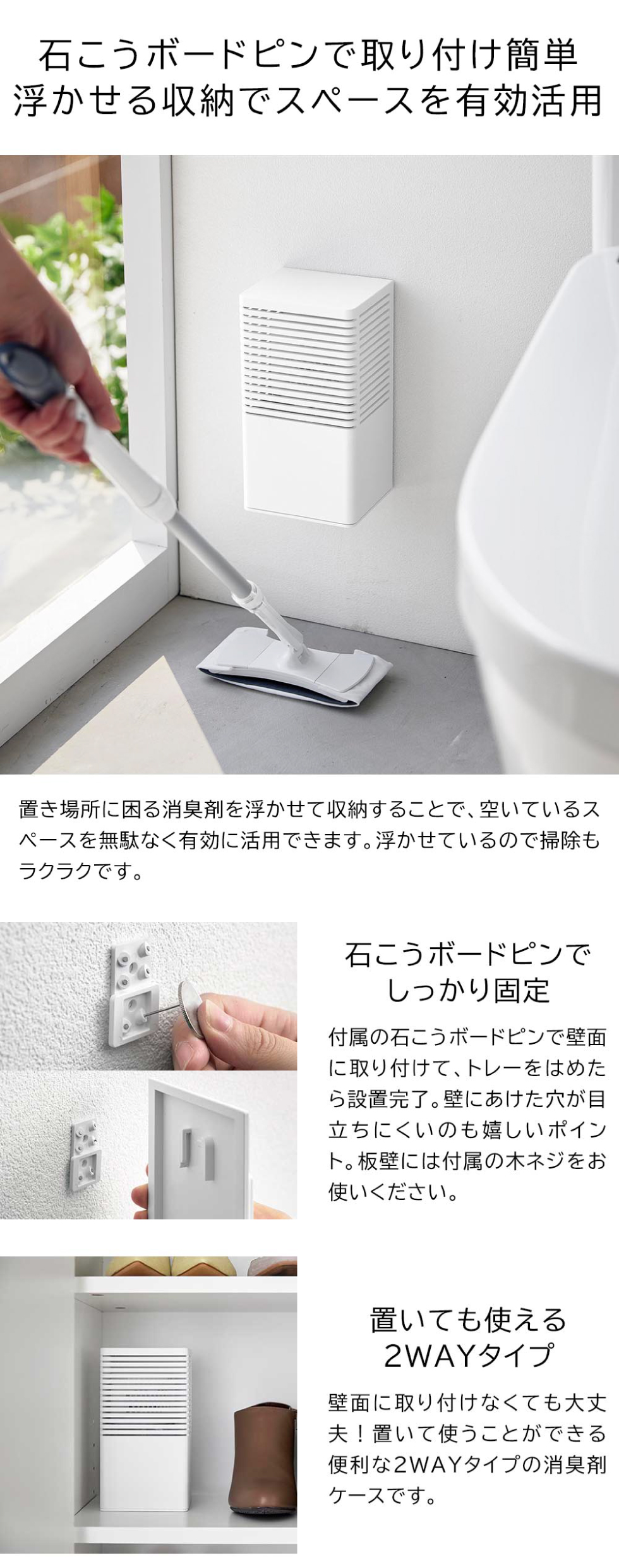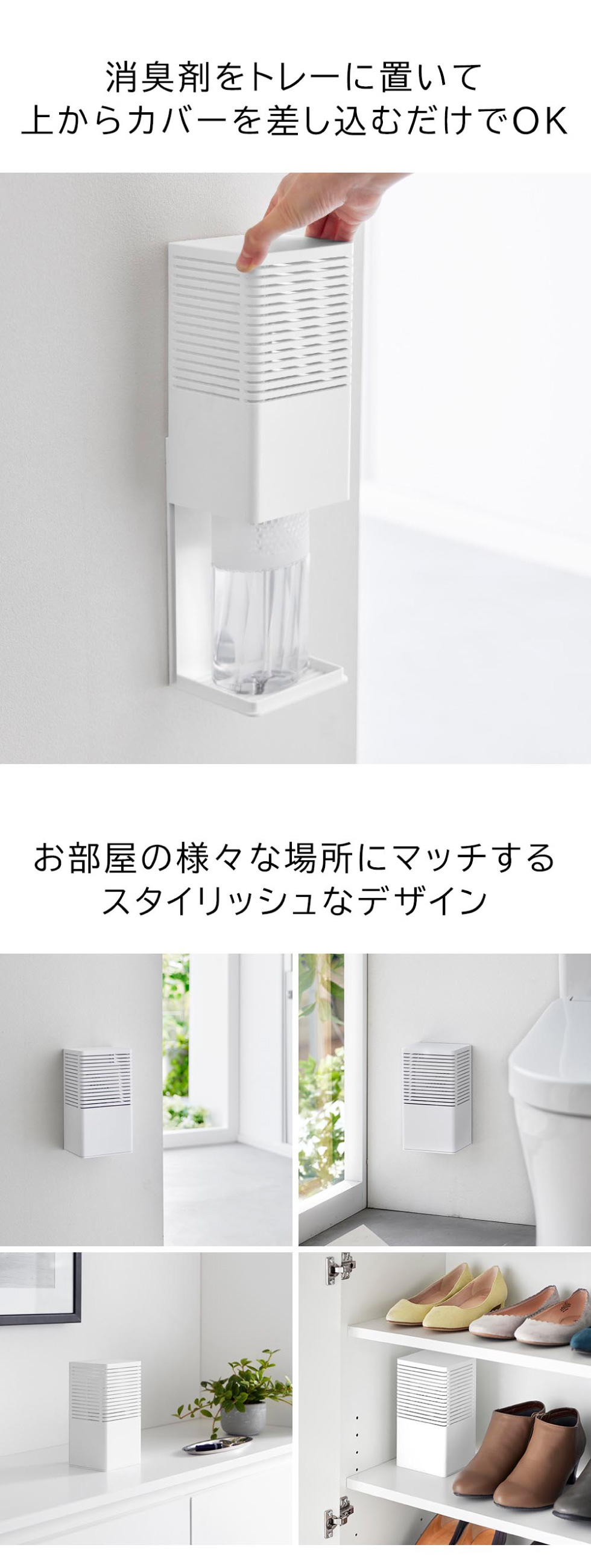 消臭剤の生活感を隠してくれるおしゃれなケースLサイズ。壁の穴が目立ちにくい石こうボードピンで取付簡単。消臭剤をケース収納。シューズボックス シンプル タワーシリーズ yamazaki