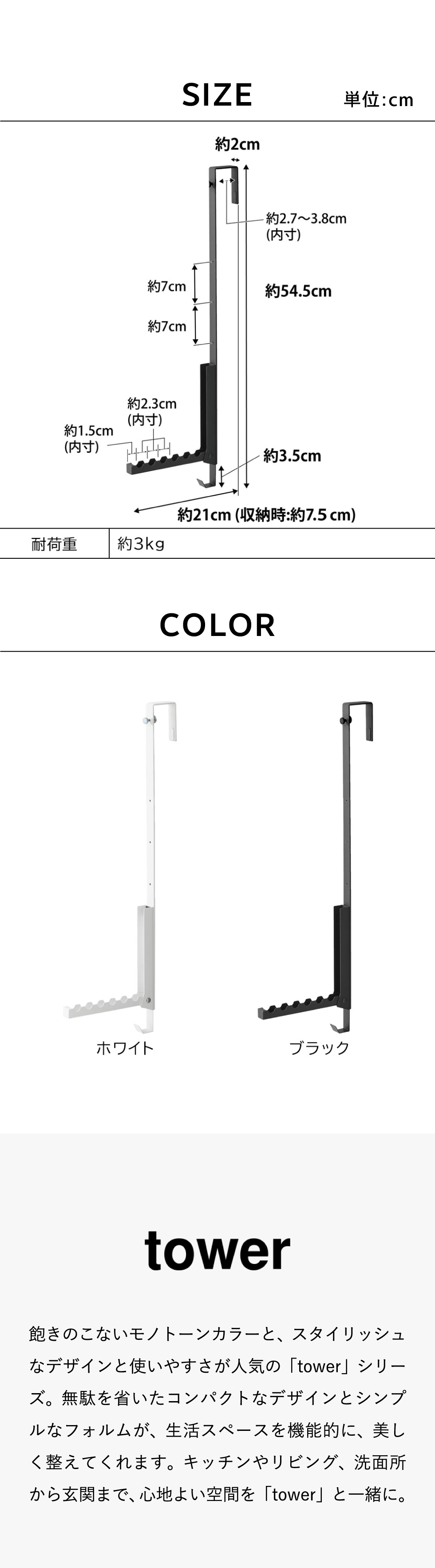 収納時:約W2×D7.5×H54.5cm(最下段使用時)