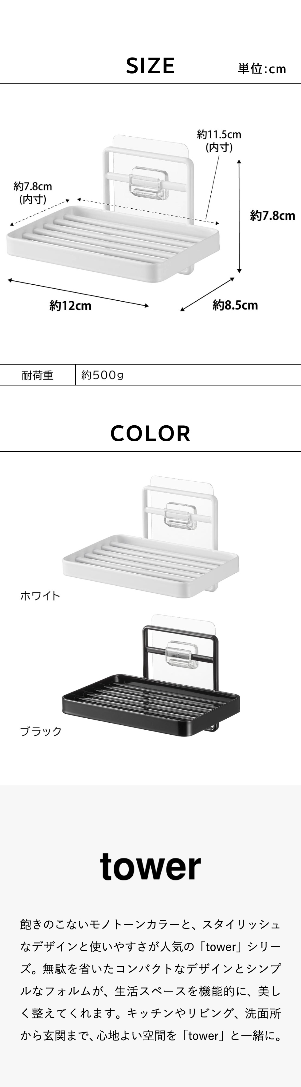 ホワイトとブラックを中心とした飽きのこないモノトーンカラーと、どんなインテリアにもスッと馴染むスタイリッシュなデザイン。そして、とことんシンプルながら、より豊かな暮らしを提案するアイデアがたくさん詰まった、使いやすいアイテムが人気です。無駄を省いたコンパクトなデザインと、シンプルなフォルムが生活スペースを機能的に、美しく整えてくれます。towerのアイテムをライン使いすれば、すっきりとした統一感が生まれ、お洒落でシックな雰囲気を演出します。キッチンやリビング、洗面所から玄関まで揃えたくなるtowerシリーズで、毎日の暮らしを彩る心地よい空間を。