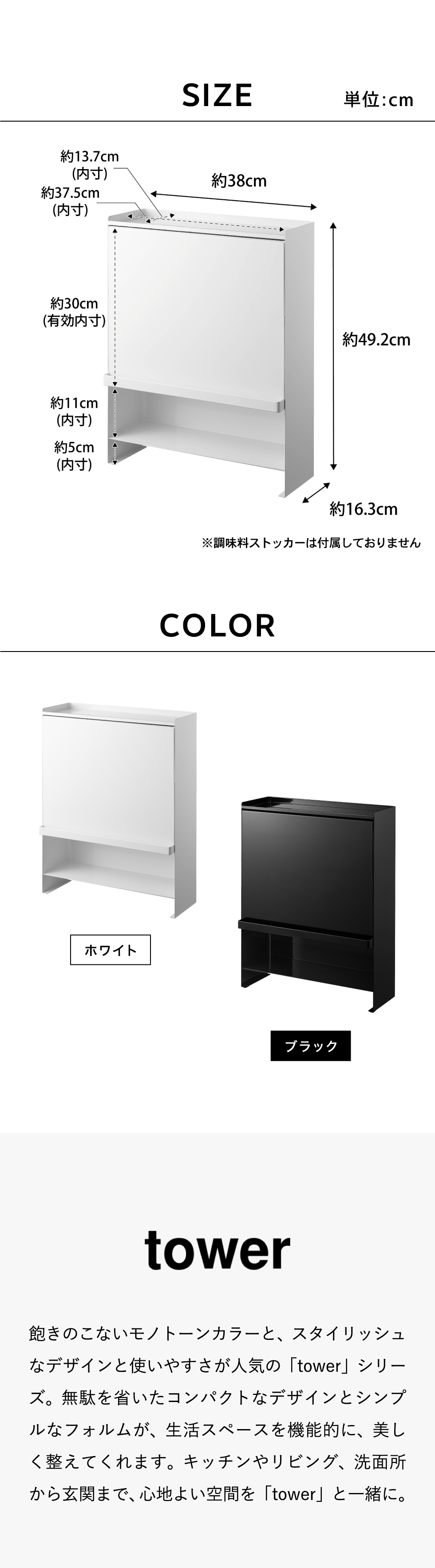 ホワイトとブラックを中心とした飽きのこないモノトーンカラーと、どんなインテリアにもスッと馴染むスタイリッシュなデザイン。そして、とことんシンプルながら、より豊かな暮らしを提案するアイデアがたくさん詰まった、使いやすいアイテムが人気です。無駄を省いたコンパクトなデザインと、シンプルなフォルムが生活スペースを機能的に、美しく整えてくれます。towerのアイテムをライン使いすれば、すっきりとした統一感が生まれ、お洒落でシックな雰囲気を演出します。キッチンやリビング、洗面所から玄関まで揃えたくなるtowerシリーズで、毎日の暮らしを彩る心地よい空間を。