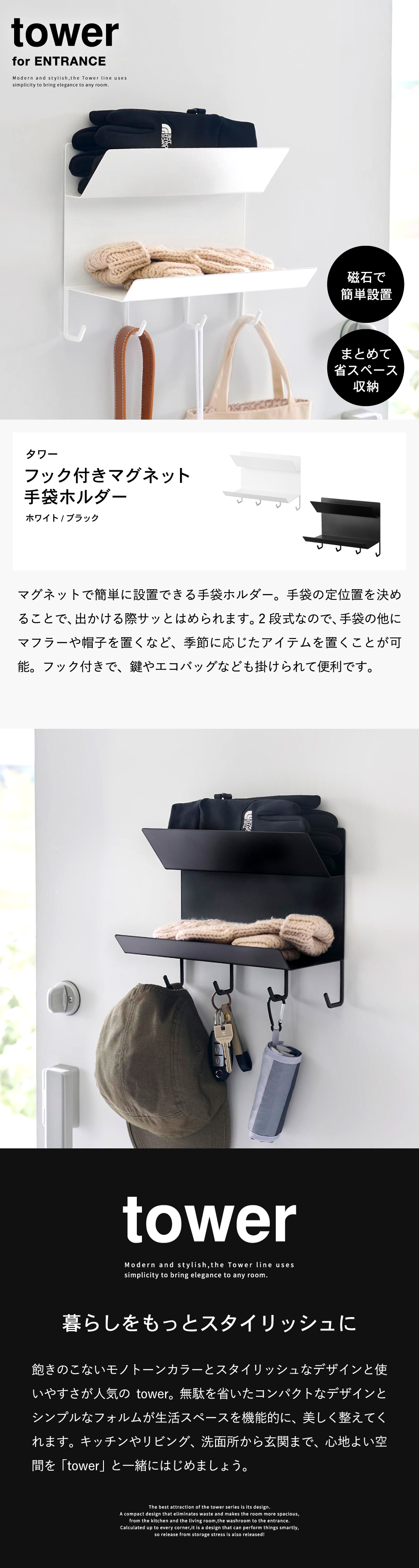 山崎実業 tower フック付きマグネット手袋ホルダー タワー 山崎実業 tower 1971 1972 ホワイト ブラック