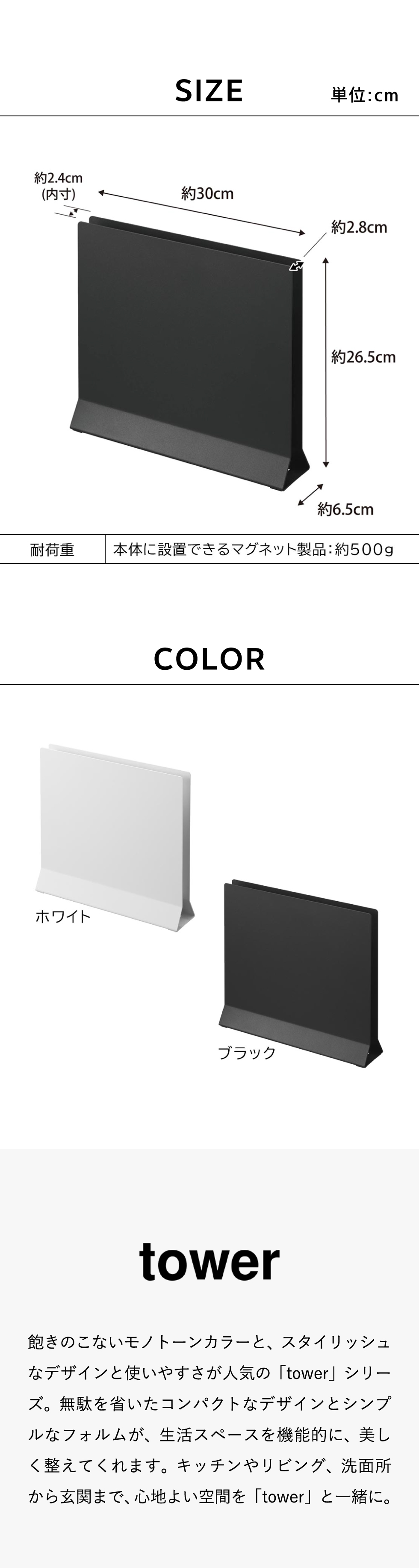 ホワイトとブラックを中心とした飽きのこないモノトーンカラーと、どんなインテリアにもスッと馴染むスタイリッシュなデザイン。そして、とことんシンプルながら、より豊かな暮らしを提案するアイデアがたくさん詰まった、使いやすいアイテムが人気です。無駄を省いたコンパクトなデザインと、シンプルなフォルムが生活スペースを機能的に、美しく整えてくれます。towerのアイテムをライン使いすれば、すっきりとした統一感が生まれ、お洒落でシックな雰囲気を演出します。キッチンやリビング、洗面所から玄関まで揃えたくなるtowerシリーズで、毎日の暮らしを彩る心地よい空間を。
