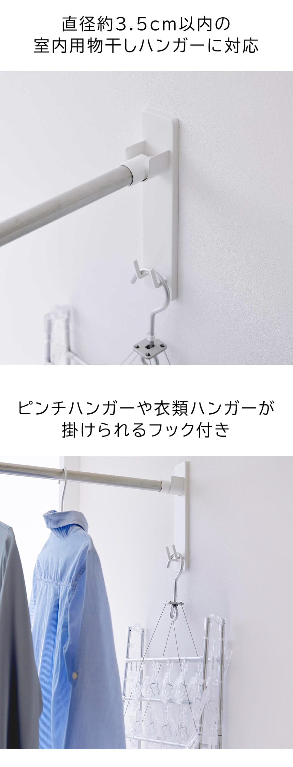 直径約3.5cm以内の室内用物干し竿に対応しています。