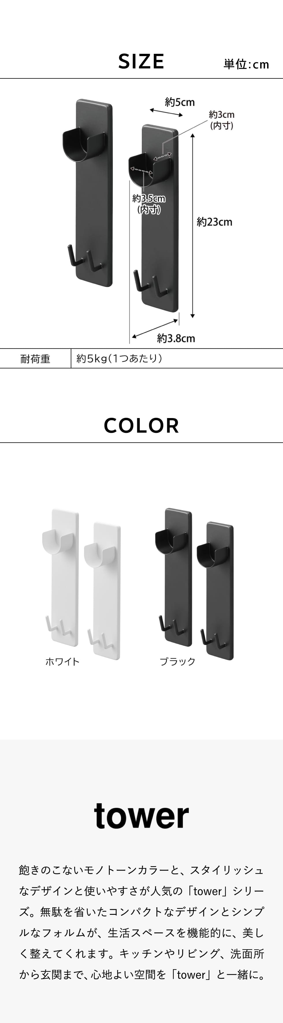 (土・日発送可) 石こうボード壁対応物干し竿ホルダー タワー 2個組 山崎実業 公式 tower 2113 2114 ホワイト ブラック 送料無料