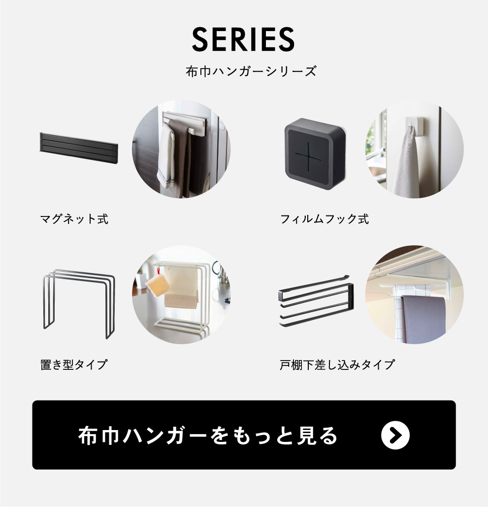 布巾以外に、普段よく使うゴム手袋やタオルなども同時に収納できて便利です。使用時は、ハンガーを広げて手に取りやすいだけでなく、掛けているモノが乾きやすく衛生的。使わない時はハンガーを畳んでスリムに収納できるので、見た目もスッキリです。