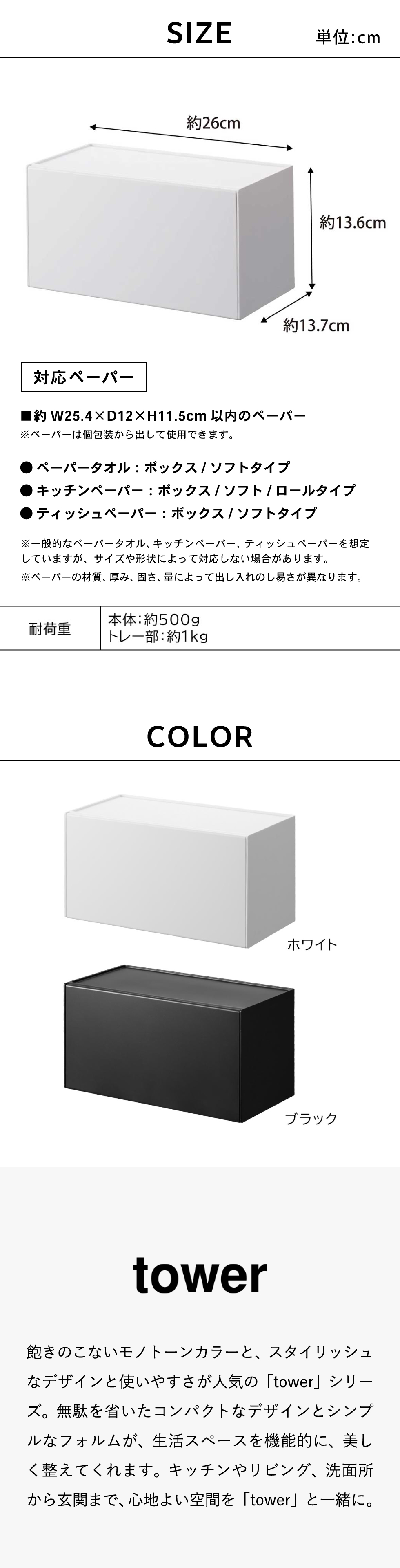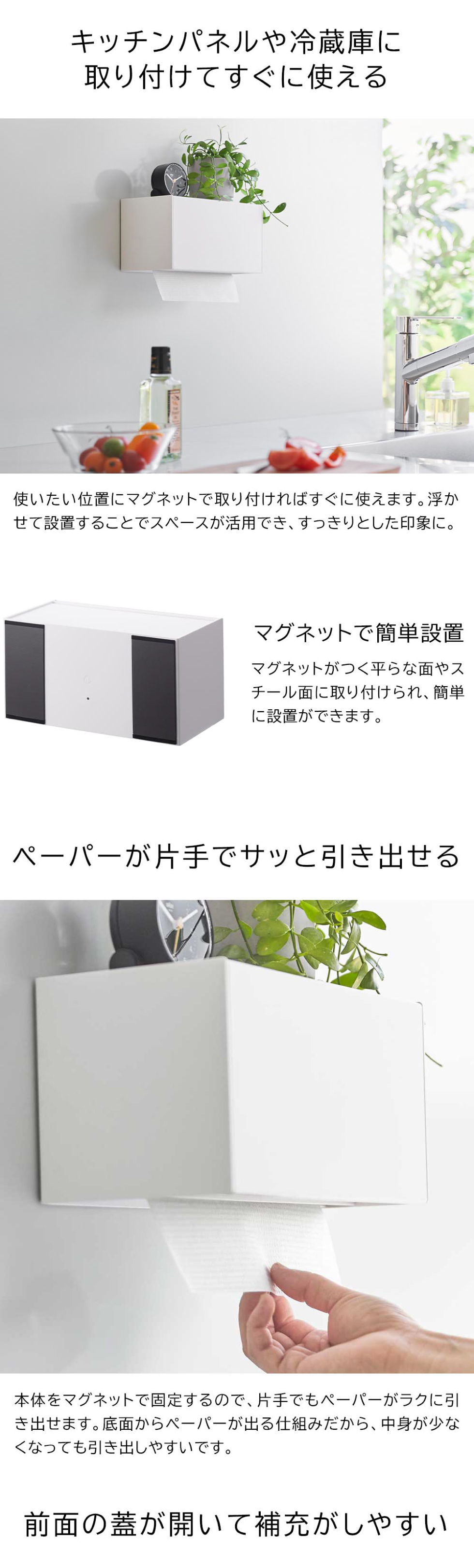 ※一般的なペーパータオル、キッチンペーパー、ティッシュペーパーを想定していますが、サイズや形状によって対応しない場合があります。 ※ペーパーの材質、厚み、固さ、量によって出し入れのし易さが異なります。