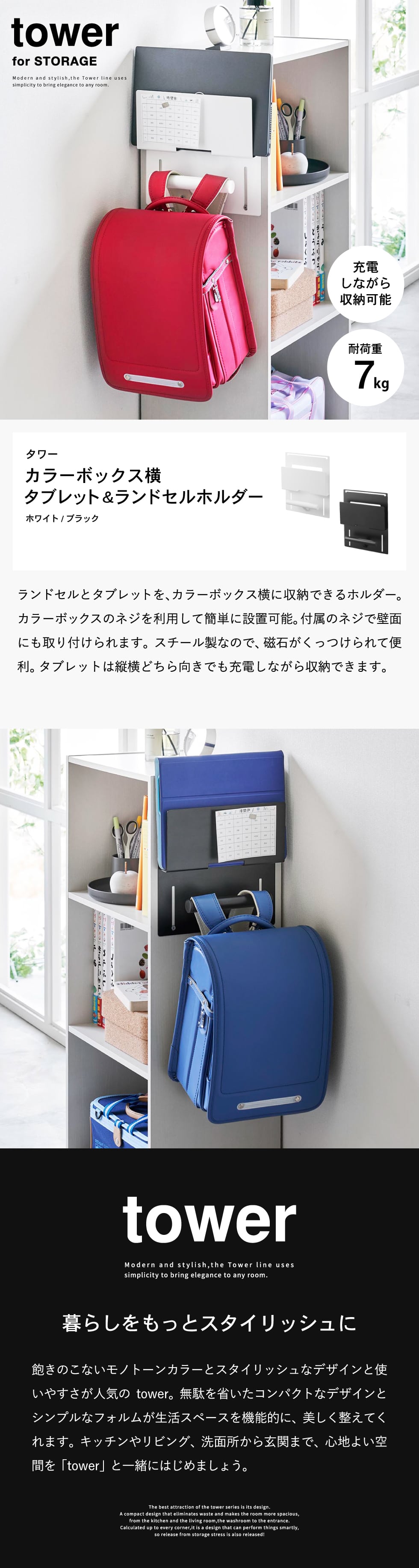 | カラーボックス横タブレット&ランドセルホルダー タワー |