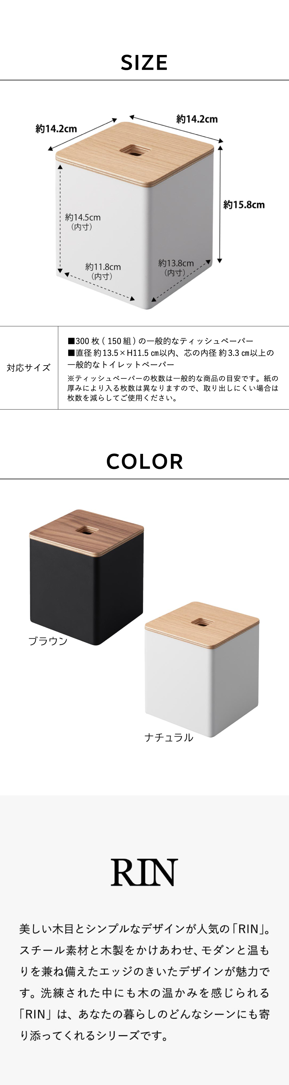 上から出せるティッシュ&トイレットペーパーケース リン