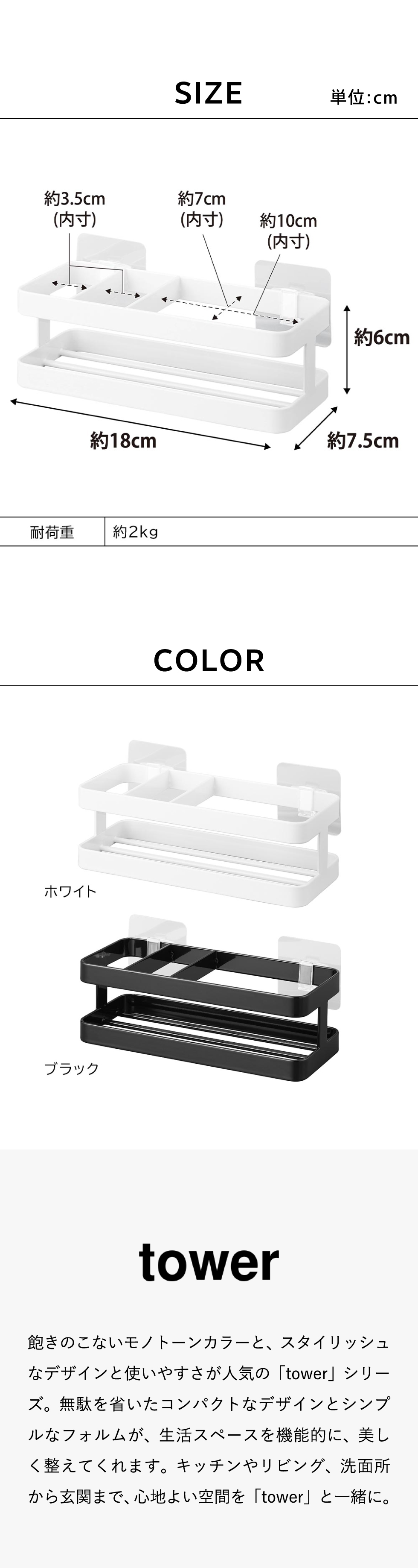 ホワイトとブラックを中心とした飽きのこないモノトーンカラーと、どんなインテリアにもスッと馴染むスタイリッシュなデザイン。そして、とことんシンプルながら、より豊かな暮らしを提案するアイデアがたくさん詰まった、使いやすいアイテムが人気です。無駄を省いたコンパクトなデザインと、シンプルなフォルムが生活スペースを機能的に、美しく整えてくれます。towerのアイテムをライン使いすれば、すっきりとした統一感が生まれ、お洒落でシックな雰囲気を演出します。キッチンやリビング、洗面所から玄関まで揃えたくなるtowerシリーズで、毎日の暮らしを彩る心地よい空間を。