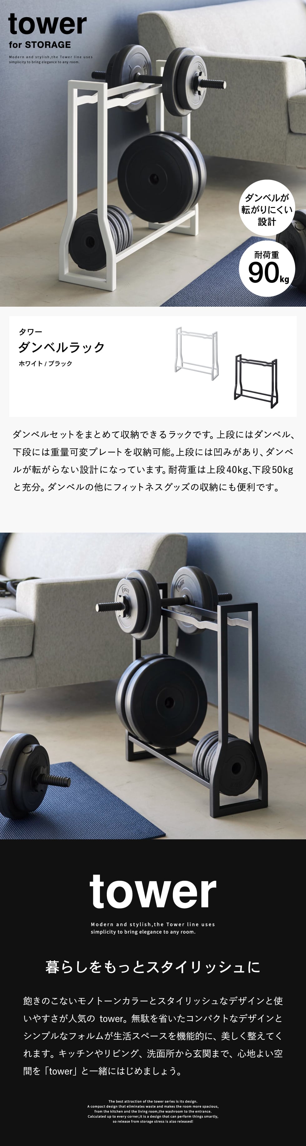 ホワイトとブラックを中心とした飽きのこないモノトーンカラーと、どんなインテリアにもスッと馴染むスタイリッシュなデザイン。そして、とことんシンプルながら、より豊かな暮らしを提案するアイデアがたくさん詰まった、使いやすいアイテムが人気です。無駄を省いたコンパクトなデザインと、シンプルなフォルムが生活スペースを機能的に、美しく整えてくれます。towerのアイテムをライン使いすれば、すっきりとした統一感が生まれ、お洒落でシックな雰囲気を演出します。キッチンやリビング、洗面所から玄関まで揃えたくなるtowerシリーズで、毎日の暮らしを彩る心地よい空間を。