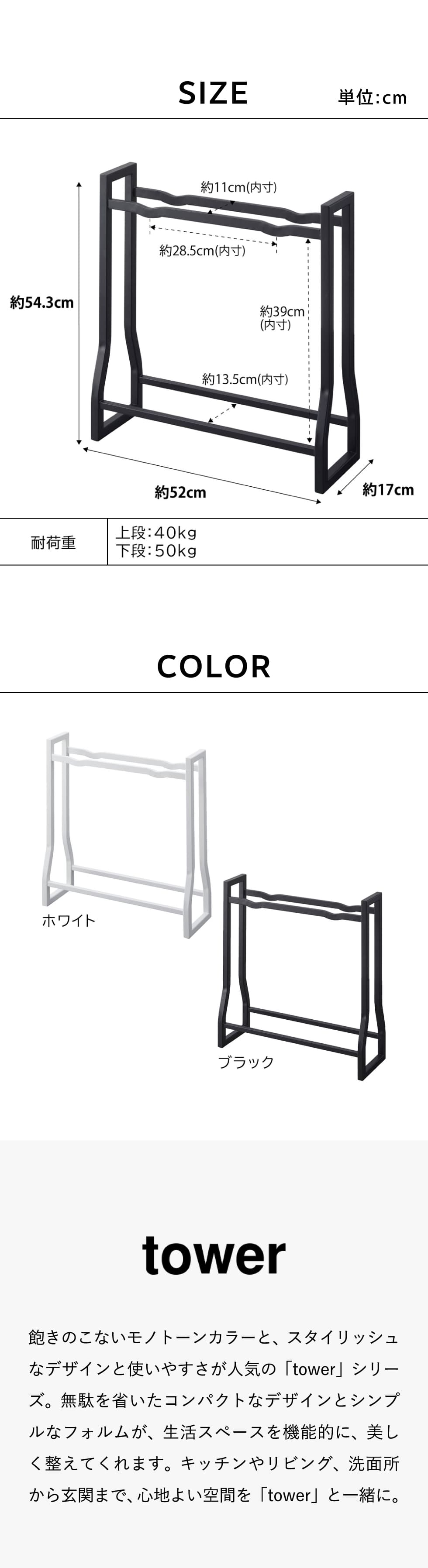 ●耐荷重:上段:40kg 下段:50kg