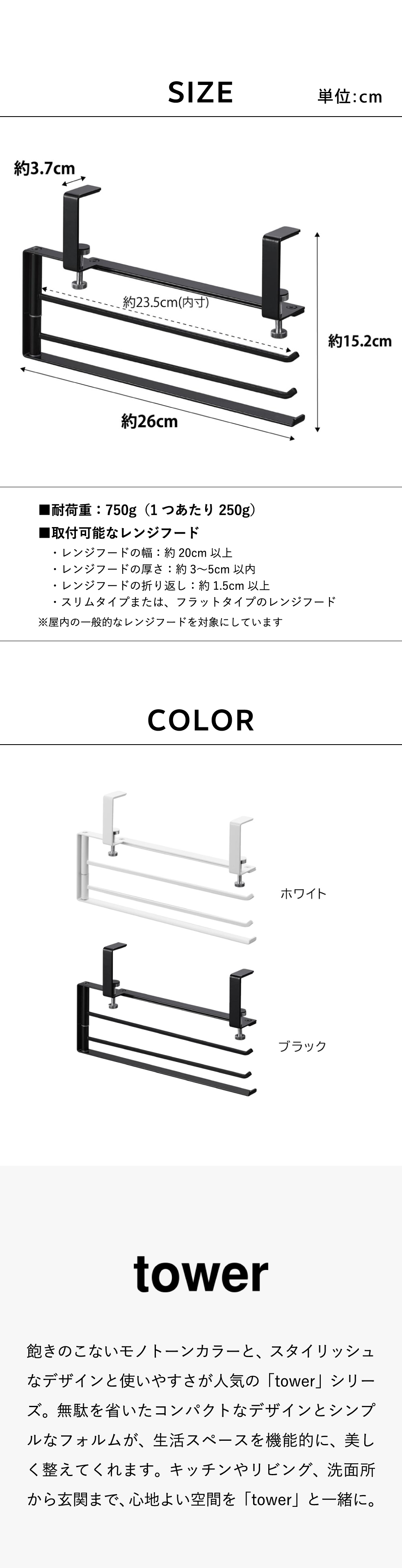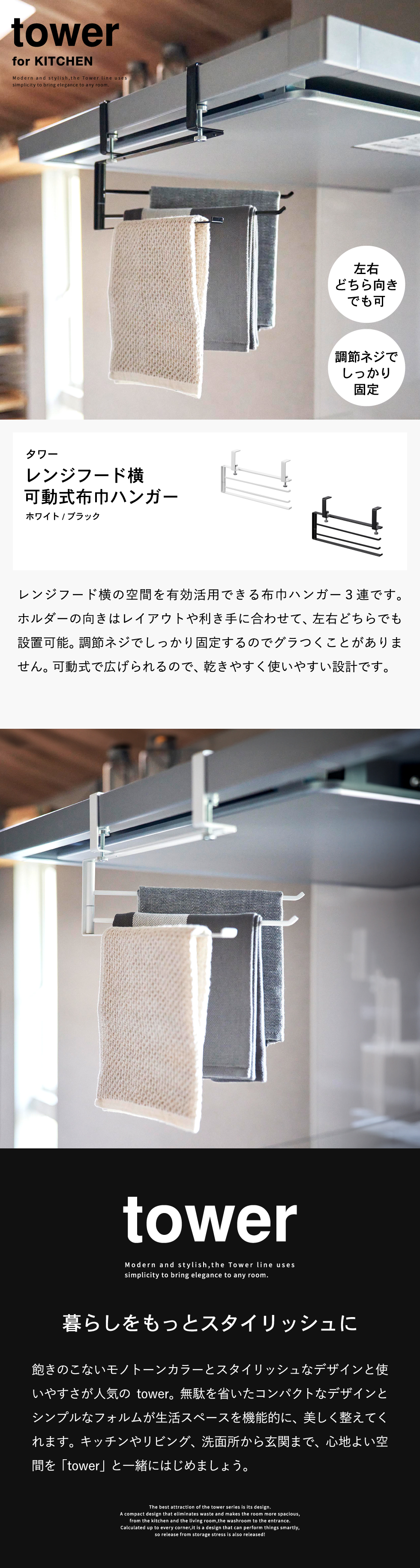 | レンジフード横可動式布巾ハンガー タワー |