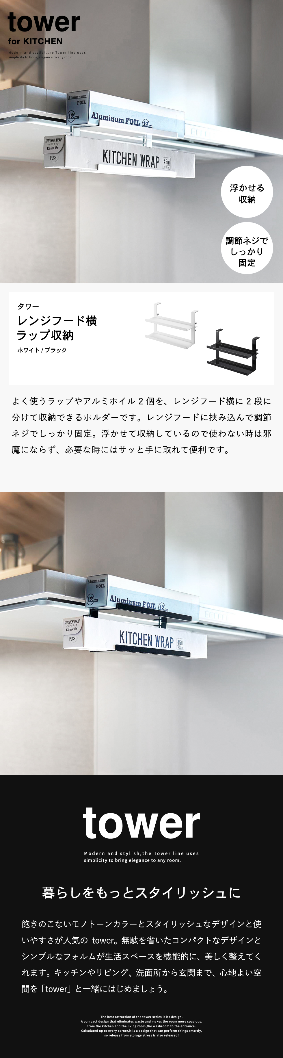 ホワイトとブラックを中心とした飽きのこないモノトーンカラーと、どんなインテリアにもスッと馴染むスタイリッシュなデザイン。そして、とことんシンプルながら、より豊かな暮らしを提案するアイデアがたくさん詰まった、使いやすいアイテムが人気です。無駄を省いたコンパクトなデザインと、シンプルなフォルムが生活スペースを機能的に、美しく整えてくれます。towerのアイテムをライン使いすれば、すっきりとした統一感が生まれ、お洒落でシックな雰囲気を演出します。キッチンやリビング、洗面所から玄関まで揃えたくなるtowerシリーズで、毎日の暮らしを彩る心地よい空間を。