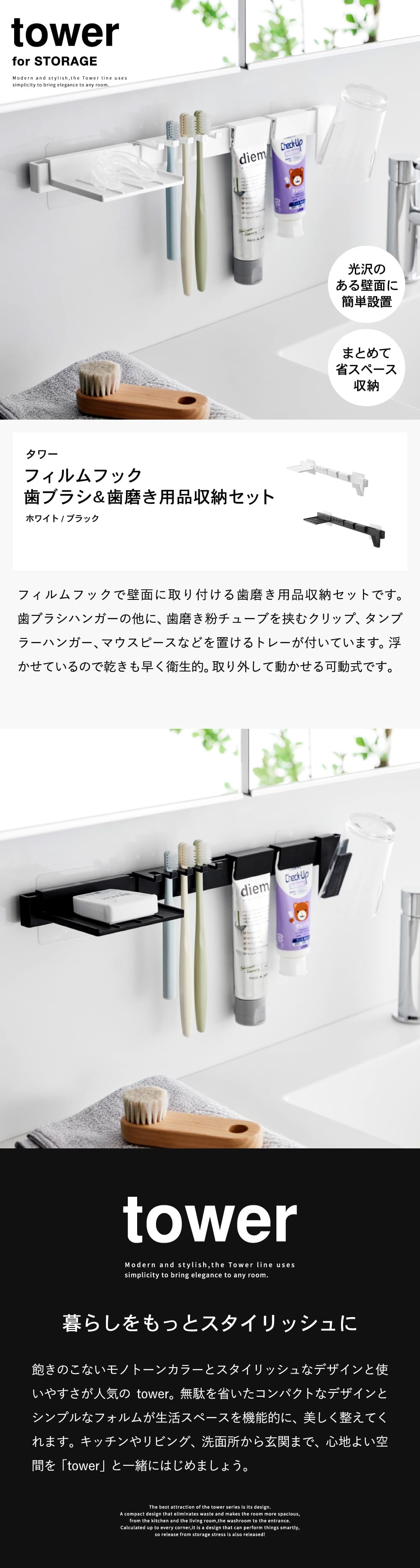 | フィルムフック歯ブラシ&歯磨き用品収納セット タワー |