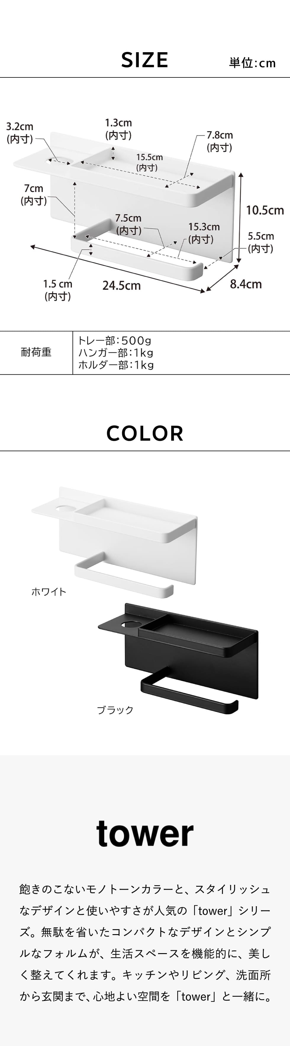 耐荷重 トレー部:500g ハンガー部:1kg ホルダー部:1kg |