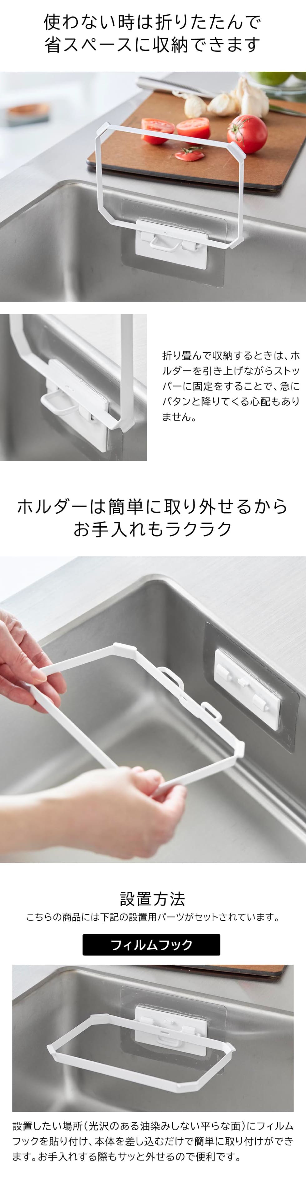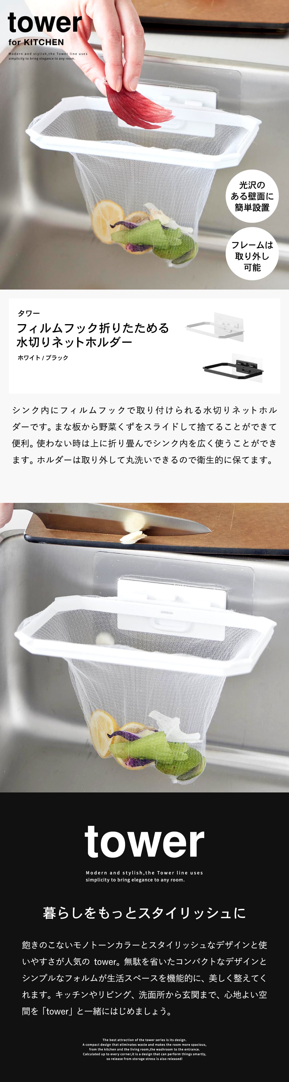 (土・日発送可) フィルムフック折りたためる水切りネットホルダー タワー 山崎実業 公式 tower キッチン 1566 1567 ホワイト ブラック