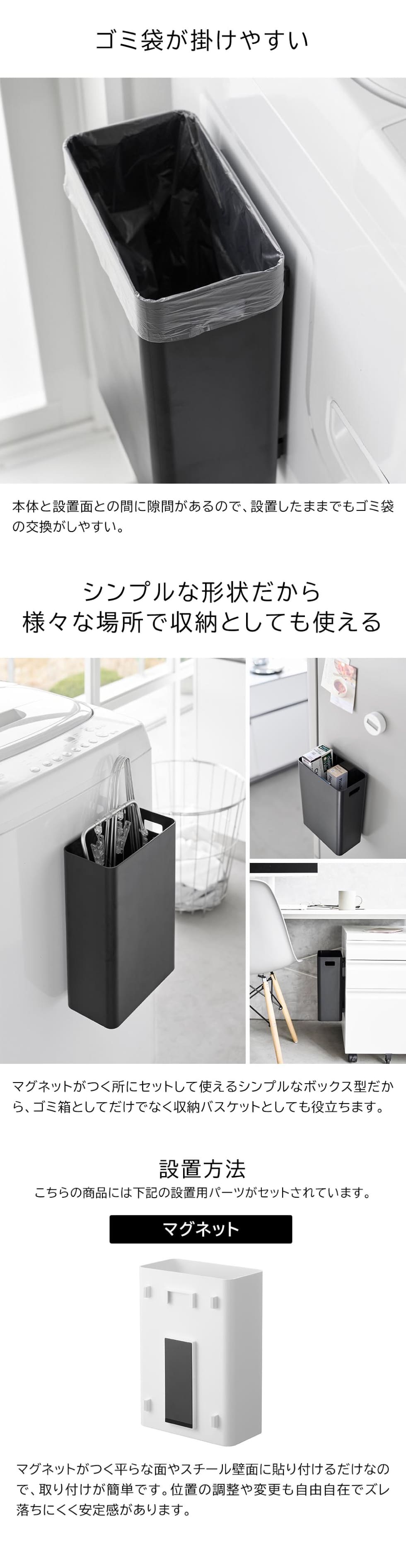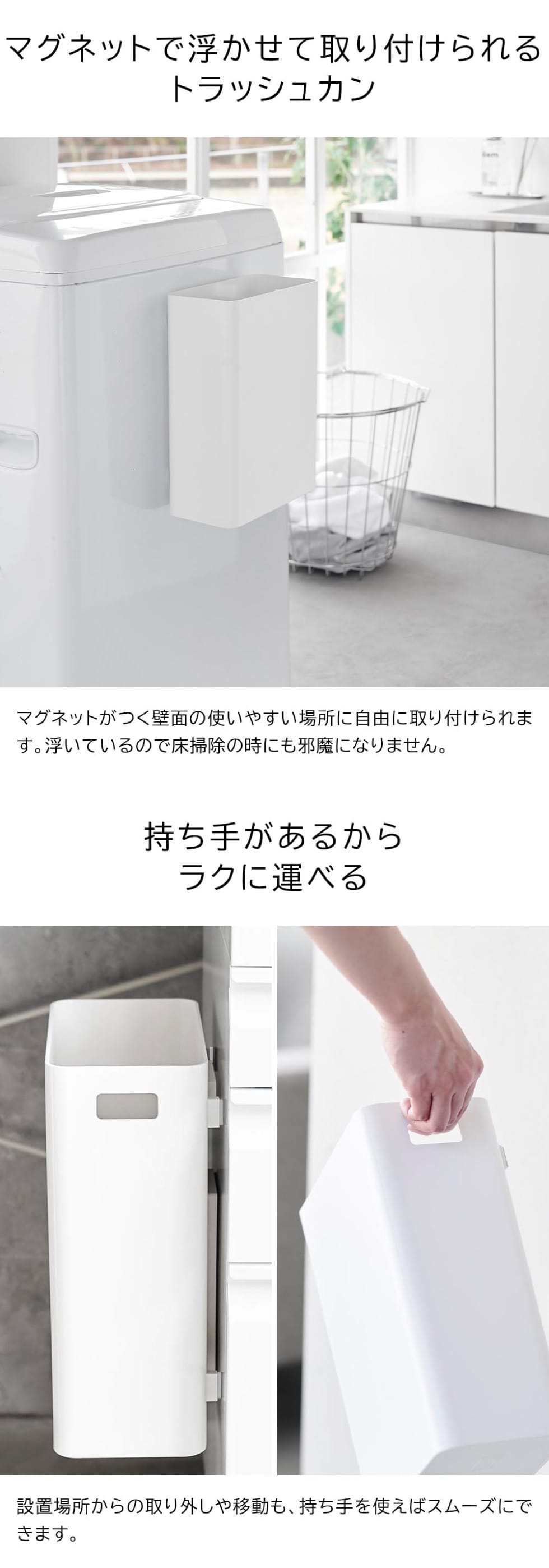 マグネットで浮かせて設置できるゴミ箱です。取り外しも簡単にできるからゴミをまとめる時もラクラク。シンプルな形状だから収納バスケットとしても使えます。小物入れ