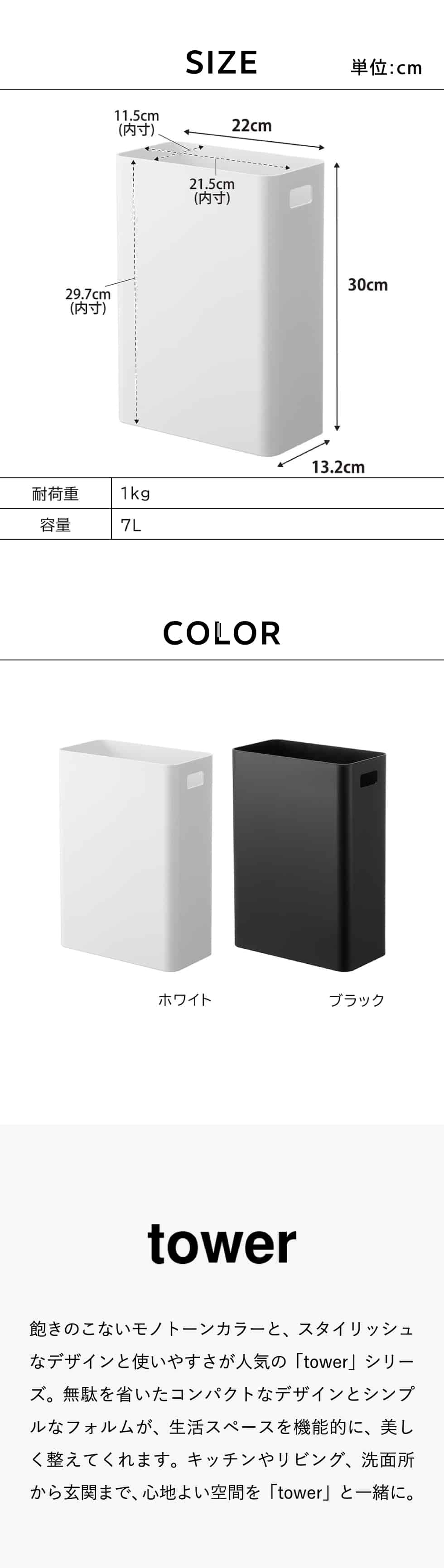 マグネットトラッシュカン タワー 7L 山崎実業 公式 tower ゴミ箱 1632 1633 ホワイト ブラック 送料無料
