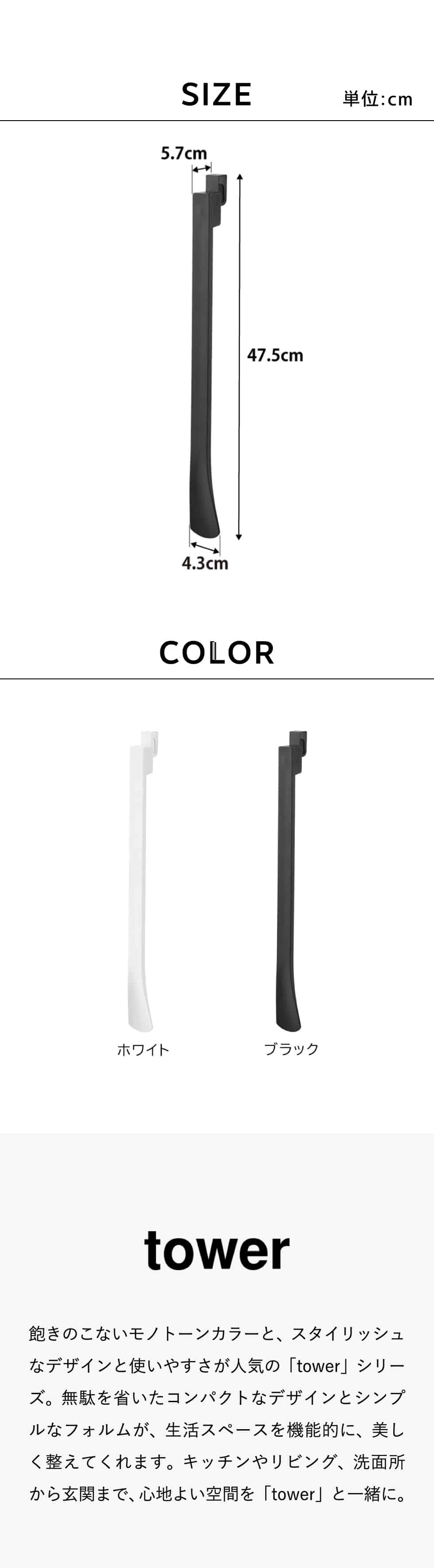 ホワイトとブラックを中心とした飽きのこないモノトーンカラーと、どんなインテリアにもスッと馴染むスタイリッシュなデザイン。そして、とことんシンプルながら、より豊かな暮らしを提案するアイデアがたくさん詰まった、使いやすいアイテムが人気です。無駄を省いたコンパクトなデザインと、シンプルなフォルムが生活スペースを機能的に、美しく整えてくれます。towerのアイテムをライン使いすれば、すっきりとした統一感が生まれ、お洒落でシックな雰囲気を演出します。キッチンやリビング、洗面所から玄関まで揃えたくなるtowerシリーズで、毎日の暮らしを彩る心地よい空間を。