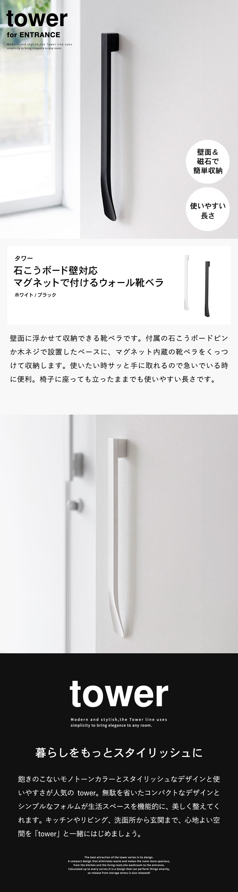 (土・日発送可) マグネットで付けるウォール靴ベラ タワー 石こうボード壁対応 山崎実業 公式 tower 1636 1637 ホワイト ブラック