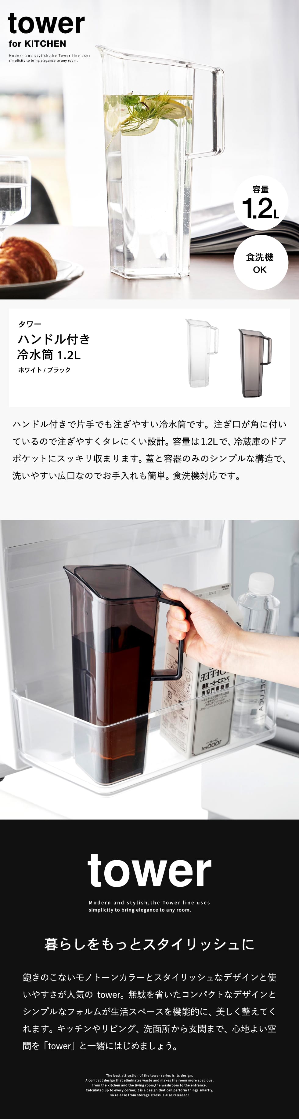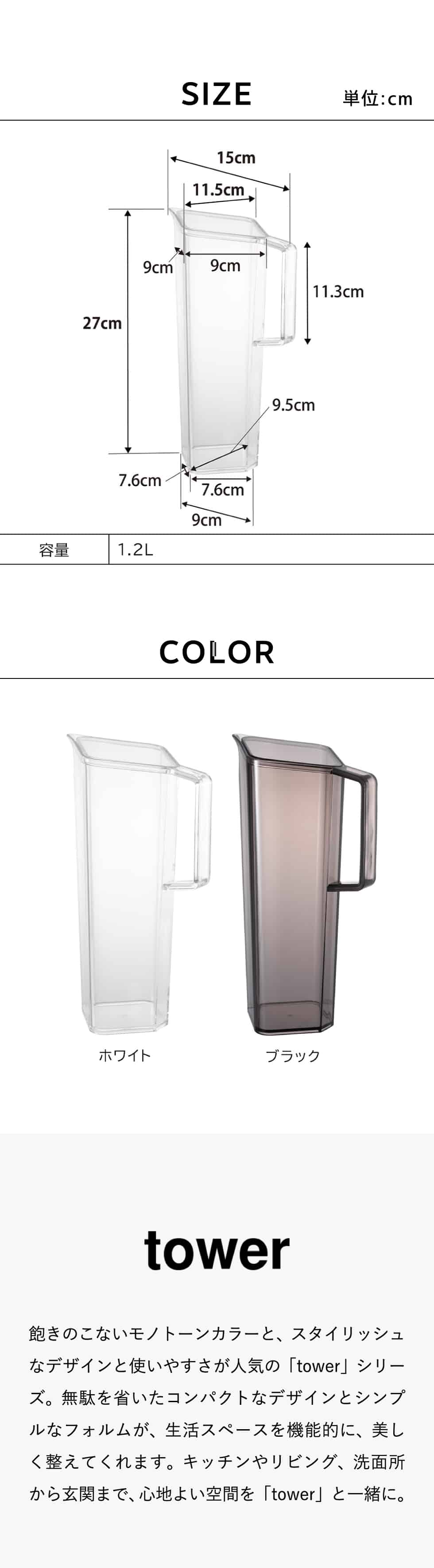 | ハンドル付き冷水筒 タワー 1.2L |