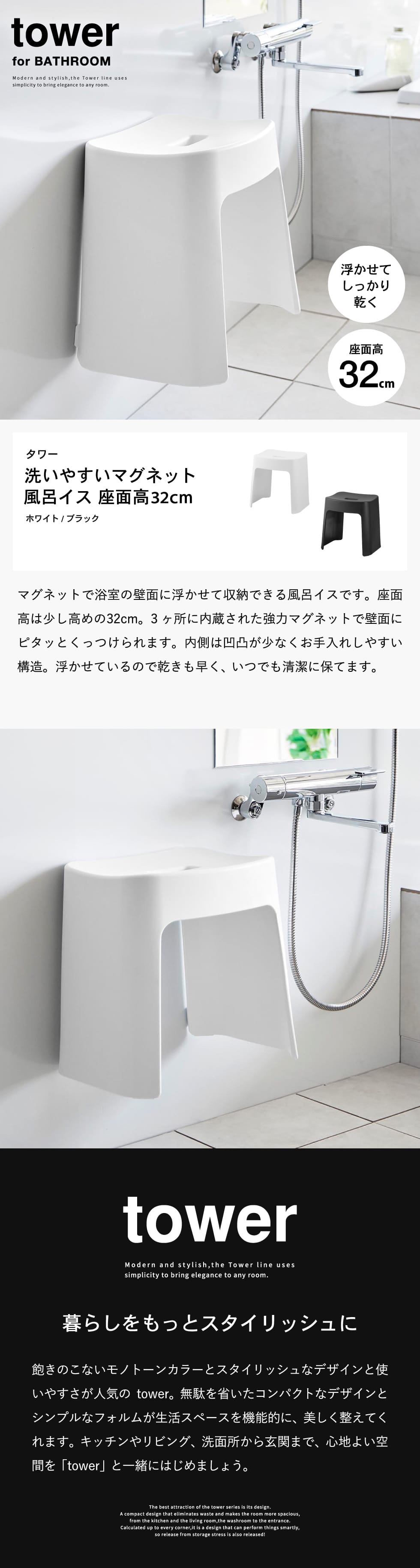 | 洗いやすいマグネット風呂イス タワー SH32 |