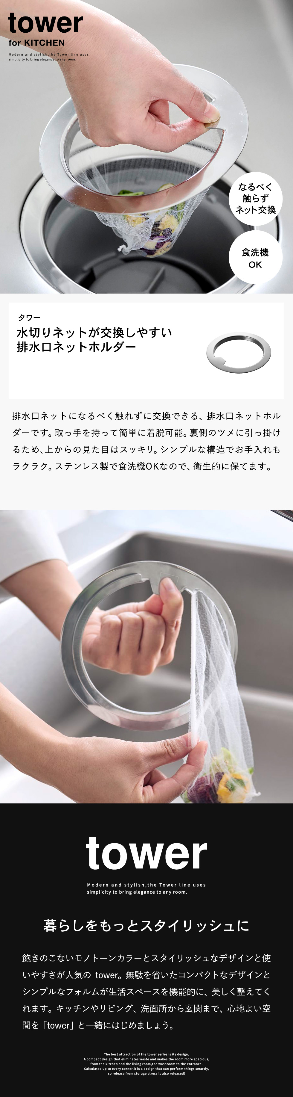 | 水切りネットが交換しやすい排水口ネットホルダー タワー |