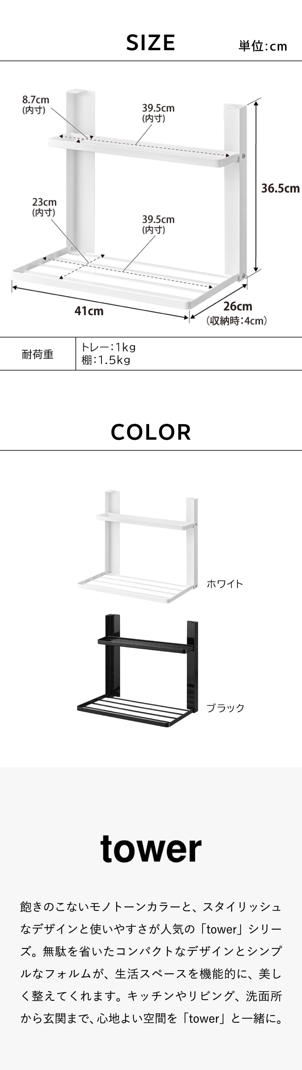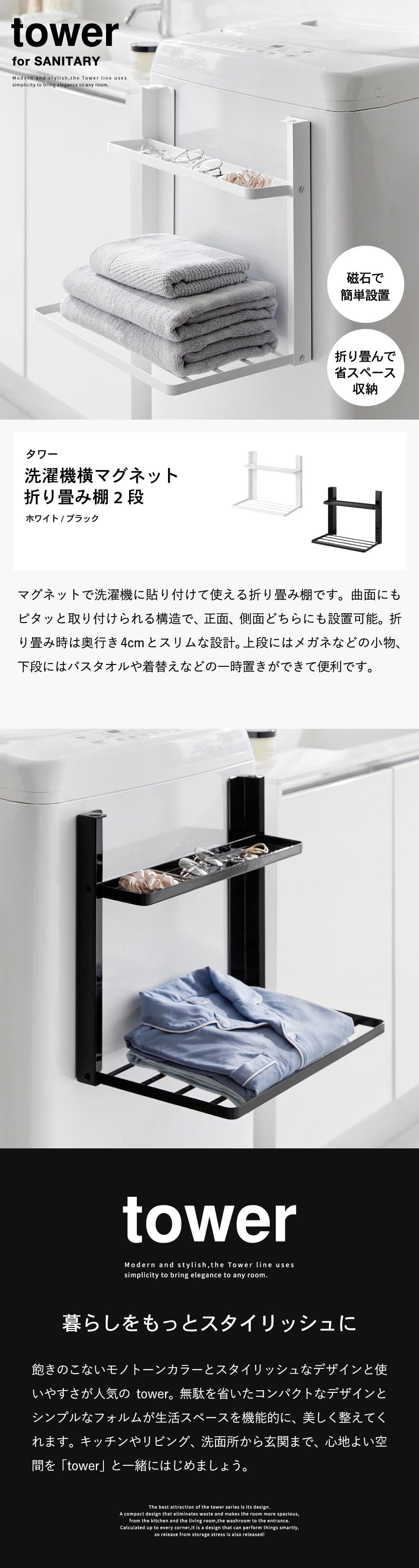 洗濯機横マグネット折り畳み棚 タワー 2段 山崎実業 tower 1717 1718 ホワイト ブラック 送料無料