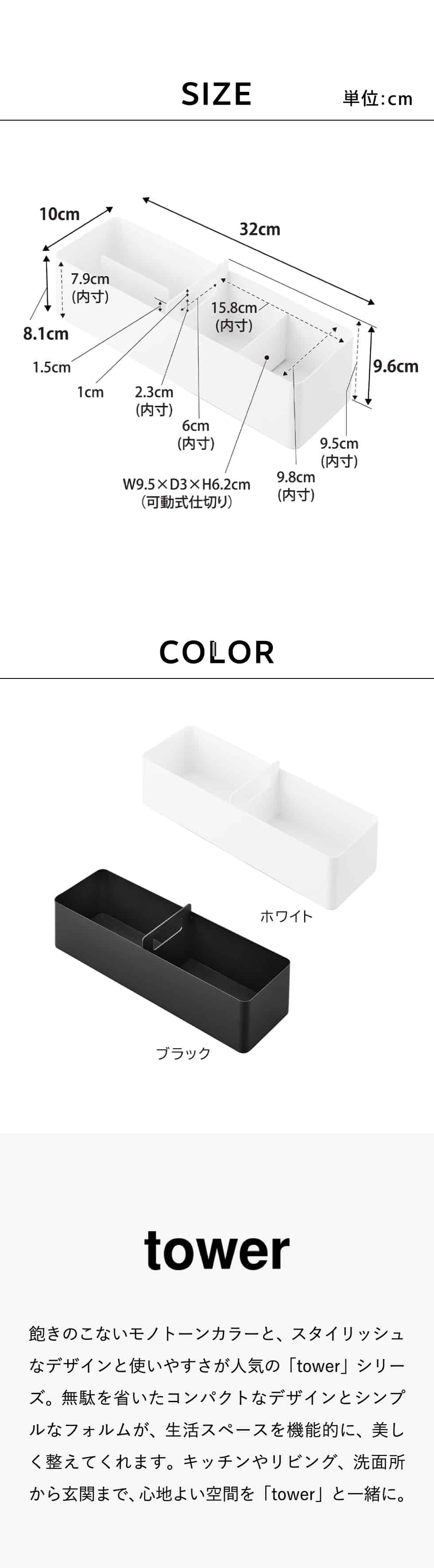 商品サイズ 本体:W32×D10×H9.6cm 可動式仕切り:W9.5×D3×H6.2cm |