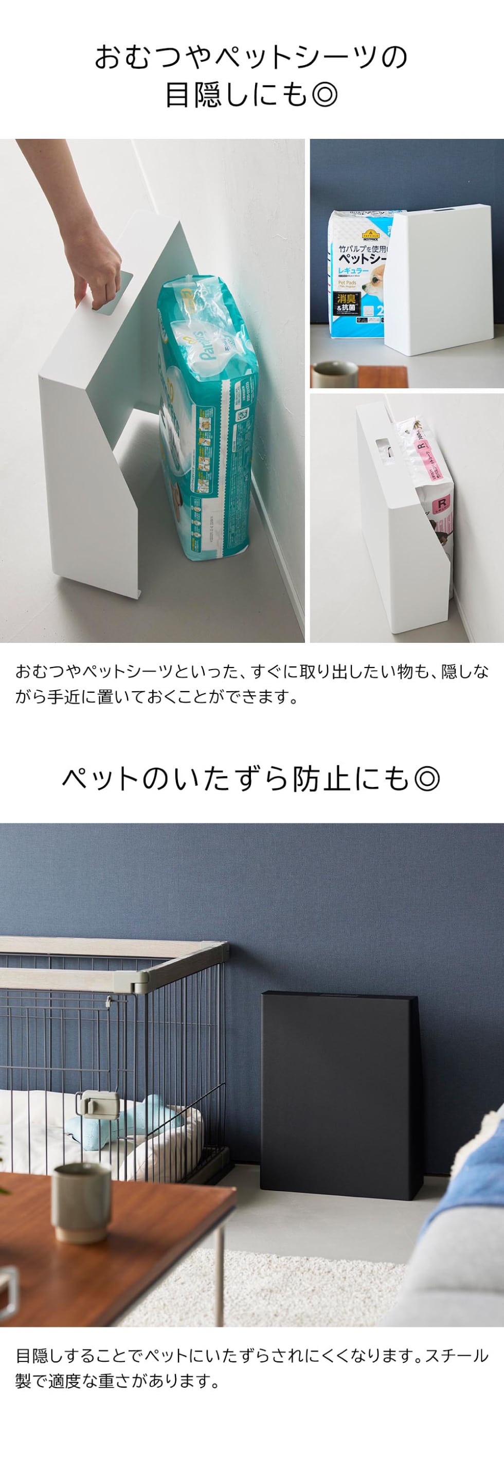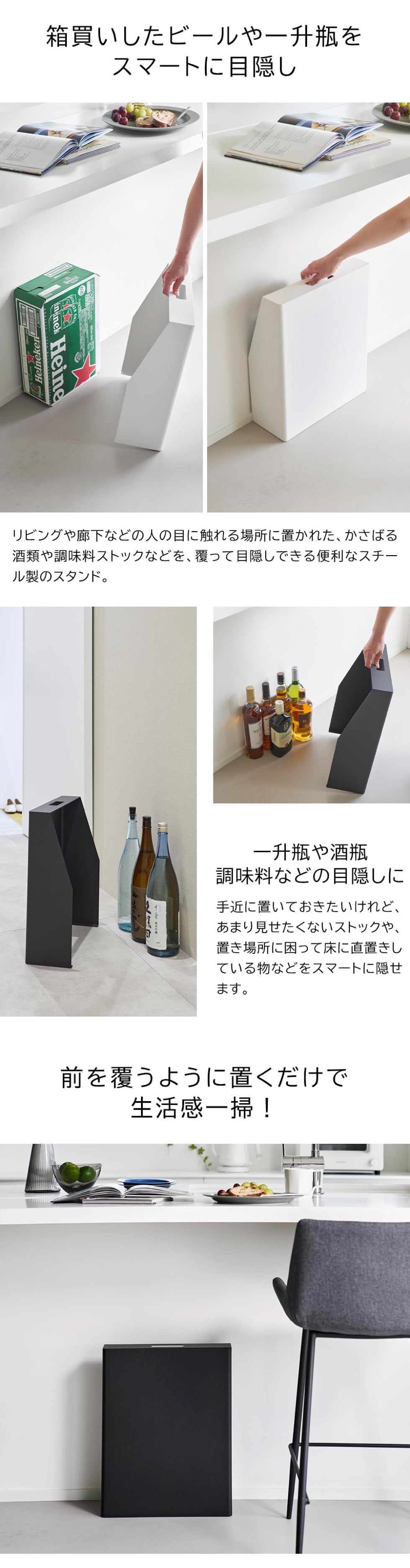 サッと置くだけで目隠しできる便利なスタンド。リビングなど手近に置いておきたいけれど、あまり見せたくないストック等を隠せます。置き場所に困る一升瓶やビールケース、調味料ストックなどをスマートに目隠し。おむつやペットシーツなども目隠しすることで生活感を隠せ、ペットのいたずら防止になります。