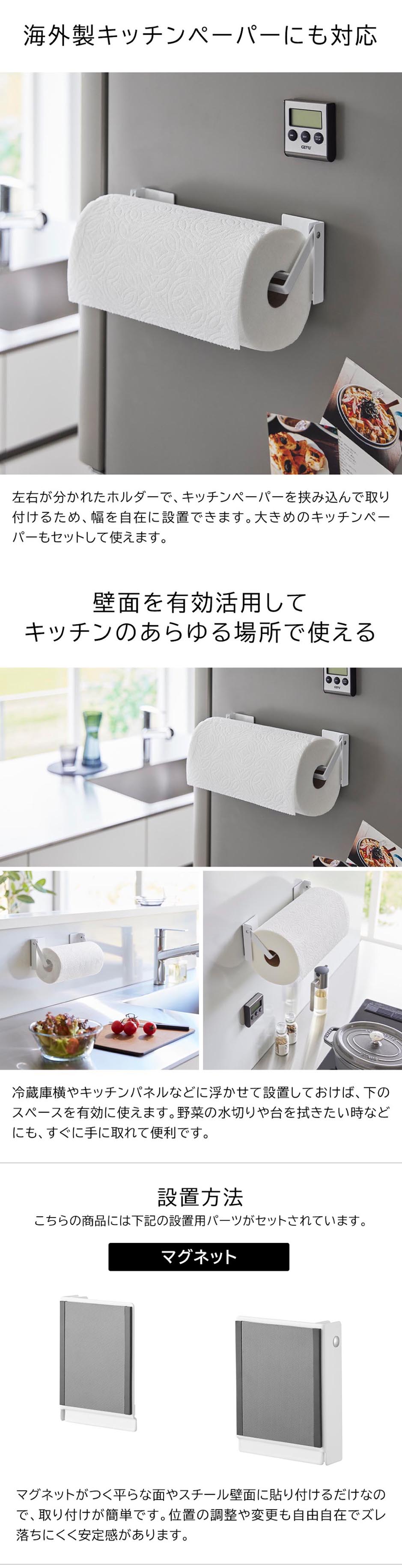 ■使用できる面 マグネットがつく平らな面・スチール面 ※キッチンペーパーロールは付属しておりません。 |