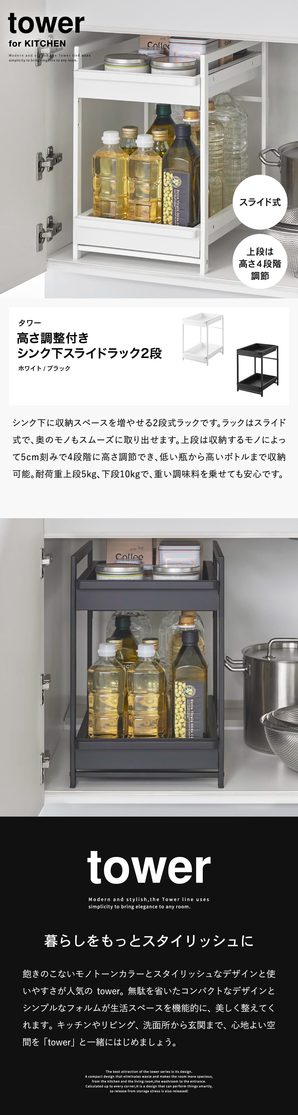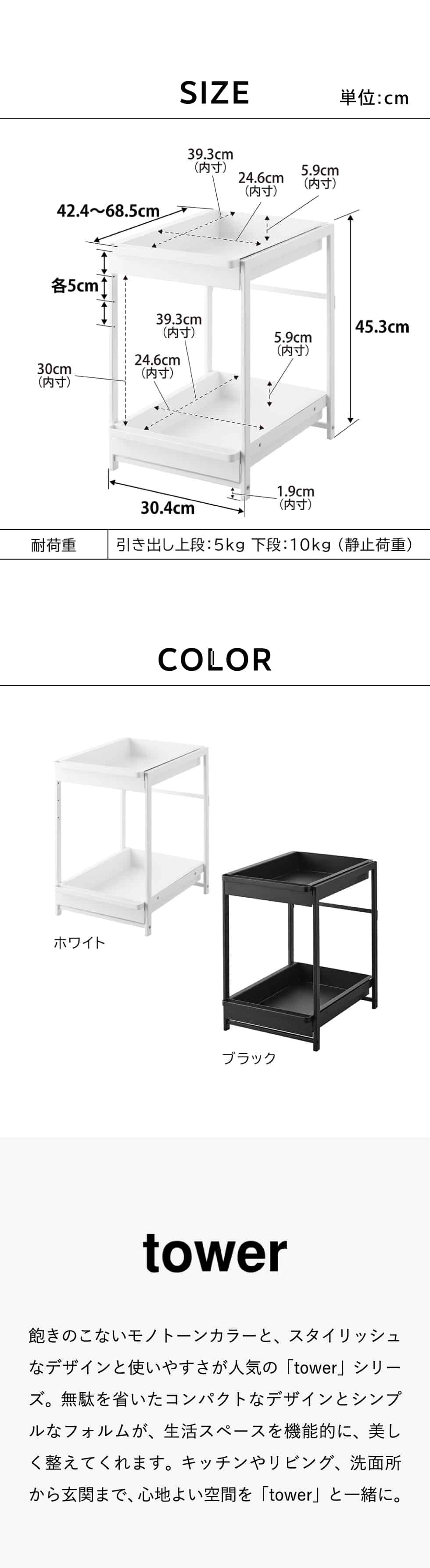 シンク下スライドラック タワー 2段 山崎実業 公式 tower 1460 1461 ホワイト ブラック / 送料無料