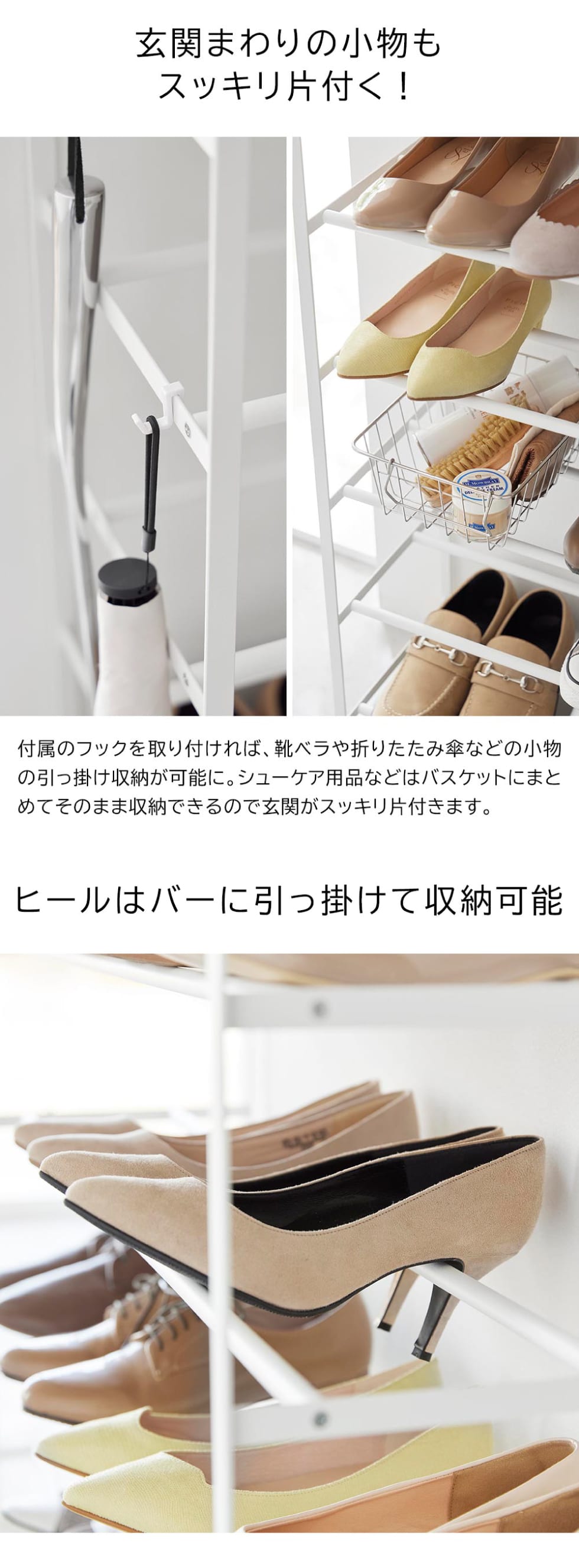 対応サイズ 収納可能数 シューズ・ブーツ:20足(大人用) ヒール・サンダル:25足(大人用) ※サイズや形状により異なります。 |