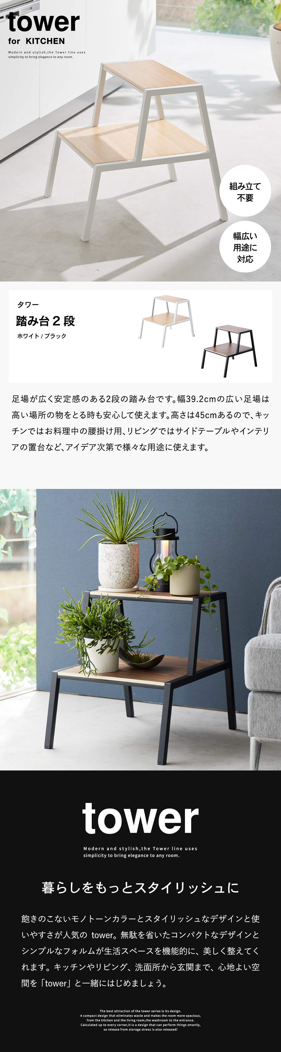 ホワイトとブラックを中心とした飽きのこないモノトーンカラーと、どんなインテリアにもスッと馴染むスタイリッシュなデザイン。そして、とことんシンプルながら、より豊かな暮らしを提案するアイデアがたくさん詰まった、使いやすいアイテムが人気です。無駄を省いたコンパクトなデザインと、シンプルなフォルムが生活スペースを機能的に、美しく整えてくれます。towerのアイテムをライン使いすれば、すっきりとした統一感が生まれ、お洒落でシックな雰囲気を演出します。キッチンやリビング、洗面所から玄関まで揃えたくなるtowerシリーズで、毎日の暮らしを彩る心地よい空間を。