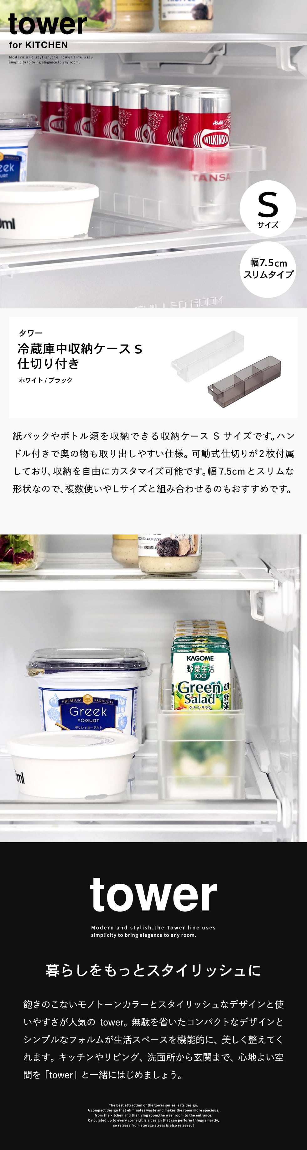 | 冷蔵庫中収納ケース タワー S 仕切り付き |