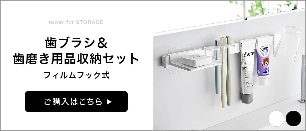 フィルムフック差し込み式歯ブラシ&チューブホルダー タワー W18 山崎実業 公式 tower 1497 1498 ホワイト ブラック