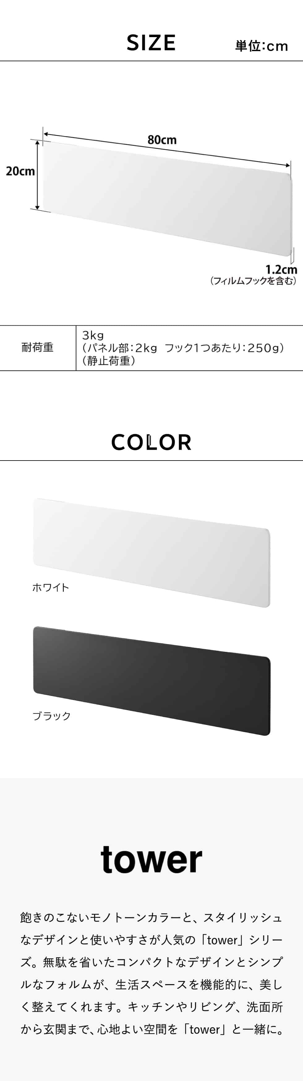 商品サイズ 本体:W80×D1.2×H20cm(フィルムフック含む) フィルムフック接着面:W6×H6cm |